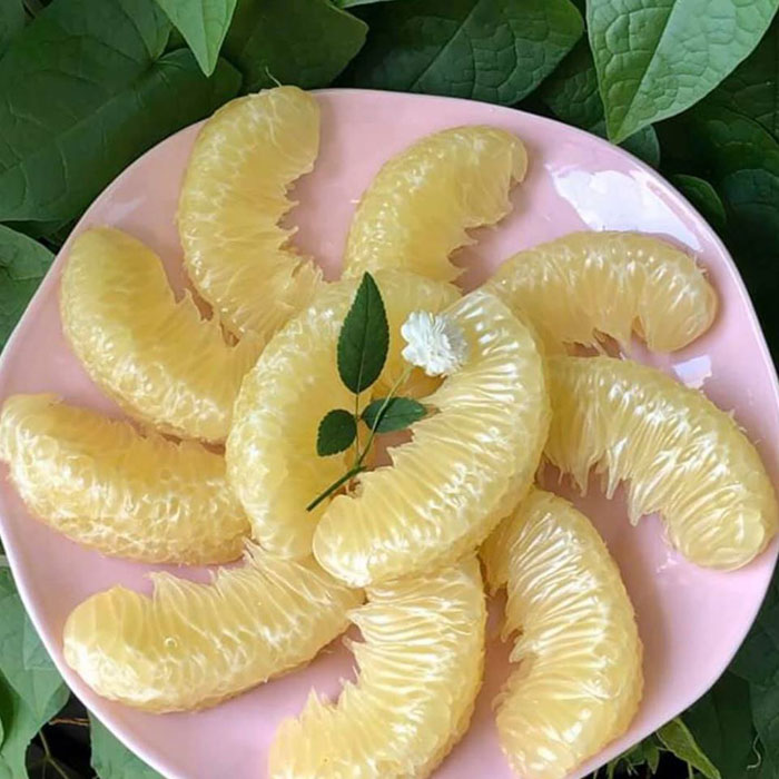 Les pamplemoussiers de Diên portent des fruits une fois par an et des pamplemoussessont mûris à l’occasion du Têt traditionnel. Leur douceur et leur parfumsont très différents d’autres variétés de pamplemousses. Leur peau et leur mésocarpe sont très minces. Les quartiers de pamplemousses ont des cellules succulentesde couleur crème, avec les petits grains. Quand on les mange, on sentiraleur saveur sucrée attrayante sur la langue.