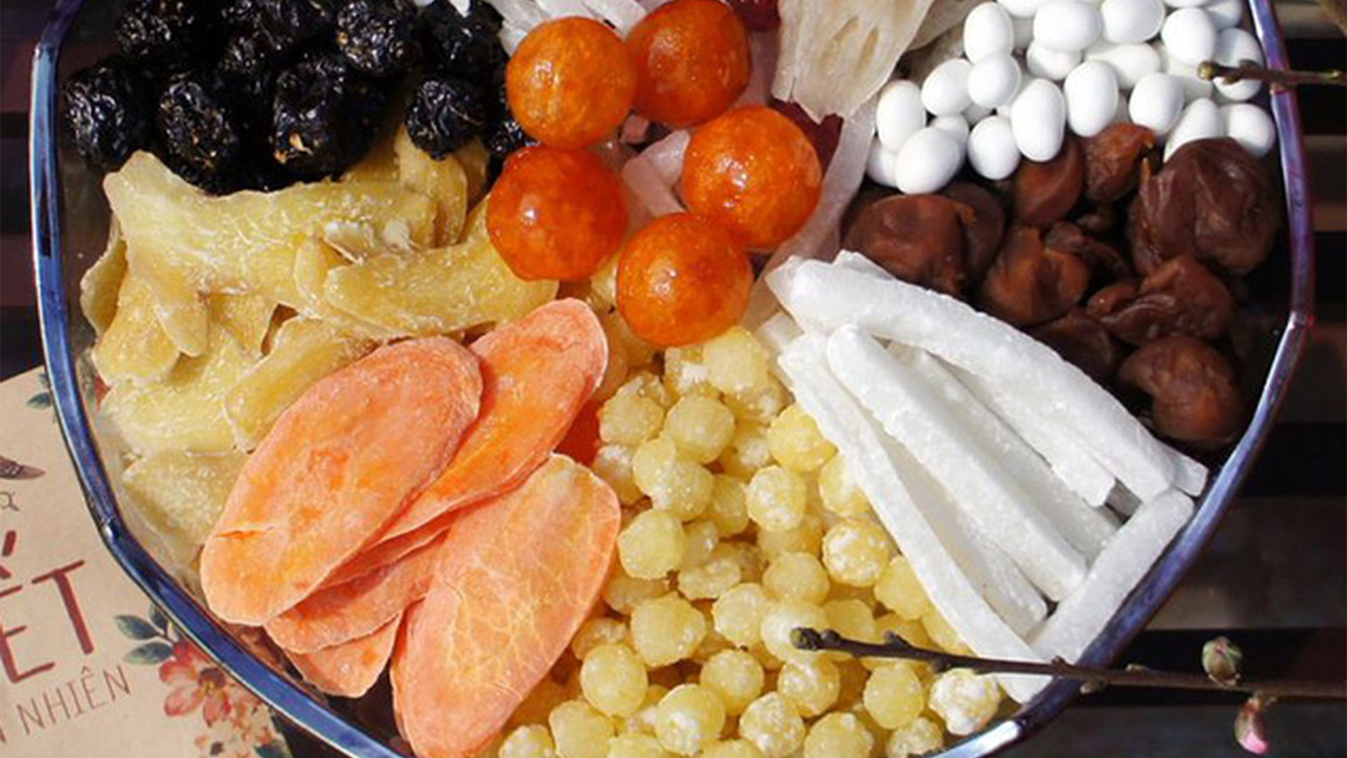 L’ô mai (fruits confits, sucrés ou salés)En pensant aux spécialités de Hanoi, on se souvient immédiatement de l’ô mai, gourmandise incontournable sur la table familiale du Têt (Nouvel An lunaire). Au premier temps, les premiers ô mai apparus à Hanoï n’ont été que des confits de tamarins et de prunes sautés. Au fil du temps, avec la sublimation de la capitale, cette gourmandise est variée avec de plus nombreuses catégories de fruits.