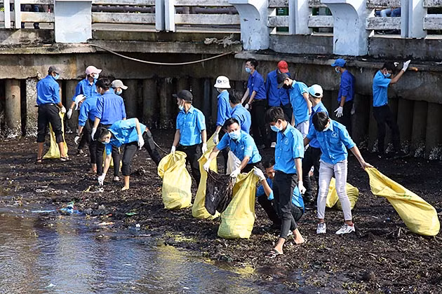 Les jeunes se joignent à la campagne « Nettoyons la mer ». Photo: NDEL.