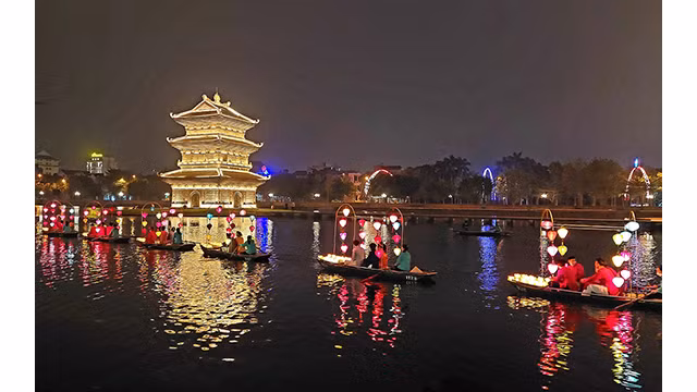 Lorsque la nuit tombe, la vieille rue de Hoa Lu scintille de centaines de lanternes colorées couvrant la montagne Ky Lân. Ce sera une destination qui permettra aux visiteurs de vivre des expériences nouvelles et inoubliables dans l'ancienne capitale de Ninh Binh.