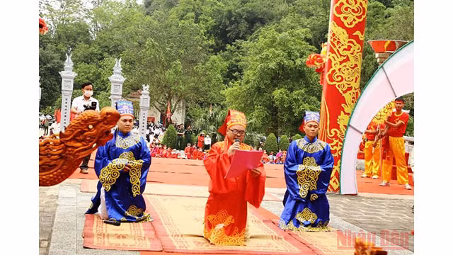 La fête Mai An Tiêm de 2022 a eu lieu avec les rituels suivants : offrande des bâtonnets d’encens, cérémonie de sacrifices dédiée aux esprits, cérémonie de commémoration et de gratitude envers les mérites du Génie Mai An Tiêm, qui a récupéré des terres incultes et a développé la terre Nga Son telle qu’elle est aujourd’hui.