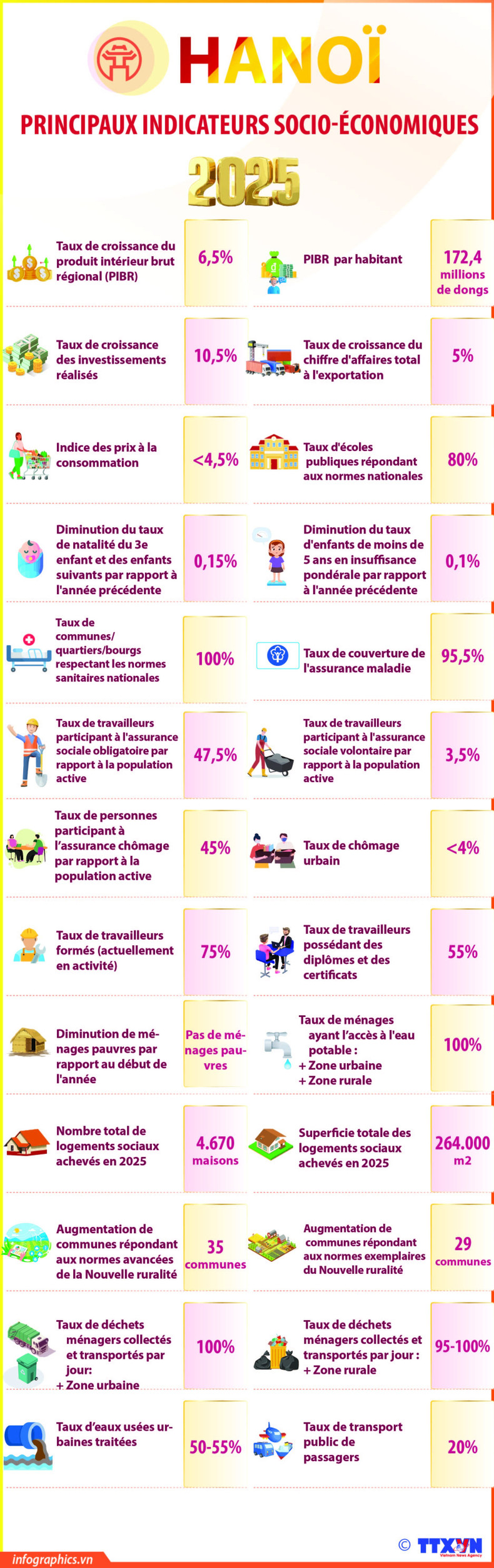 Principaux indicateurs socio-économiques de Hanoï en 2025