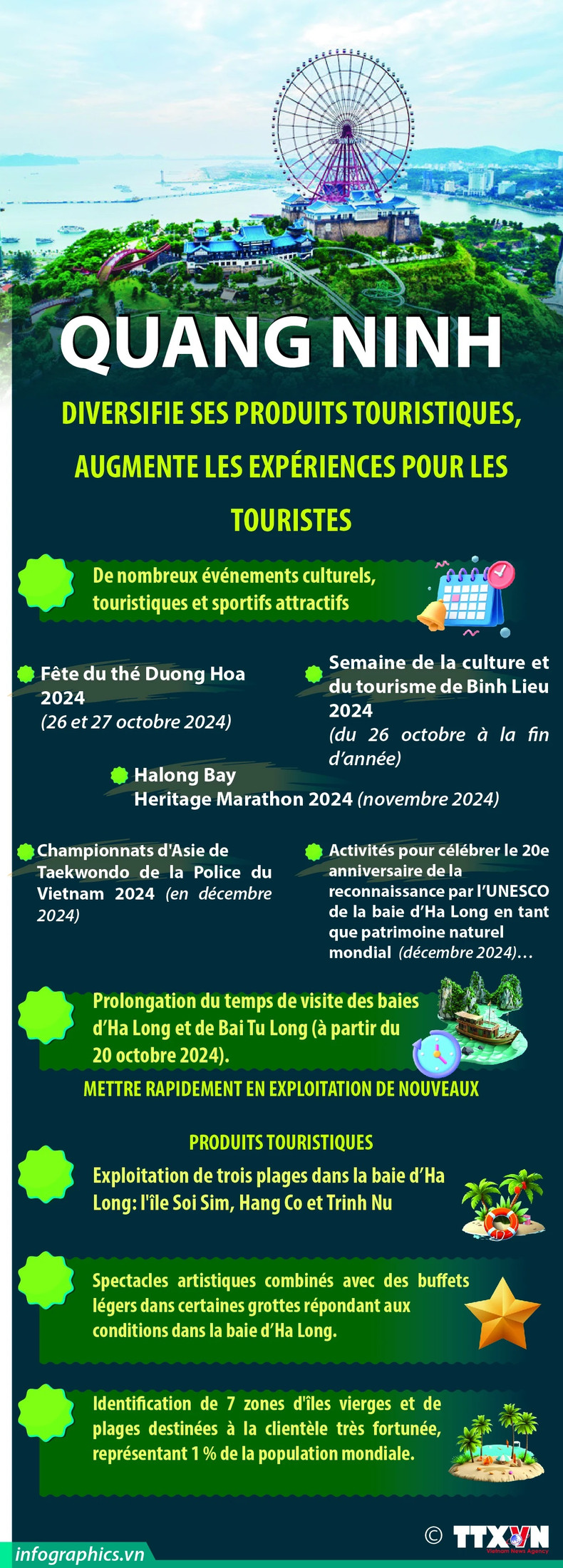 Au quatrième trimestre de 2024, la province de Quang Ninh (au Nord-Est du Vietnam) vise à attirer 3,36 millions de visiteurs. Pour concrétiser cet objectif, cette localité organisera de nombreux événements culturels, touristiques et sportifs attrayants d'ici la fin de l'année.