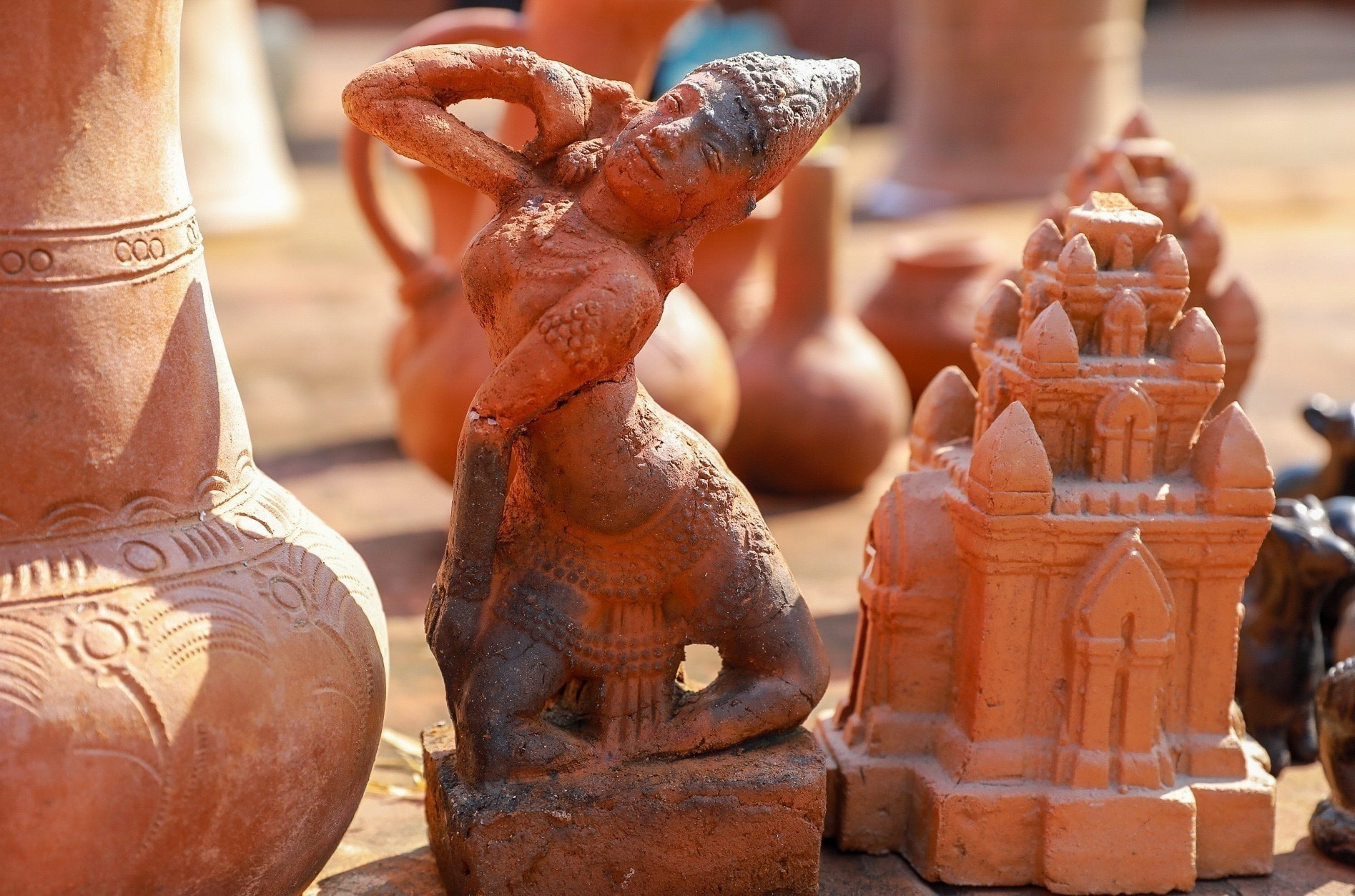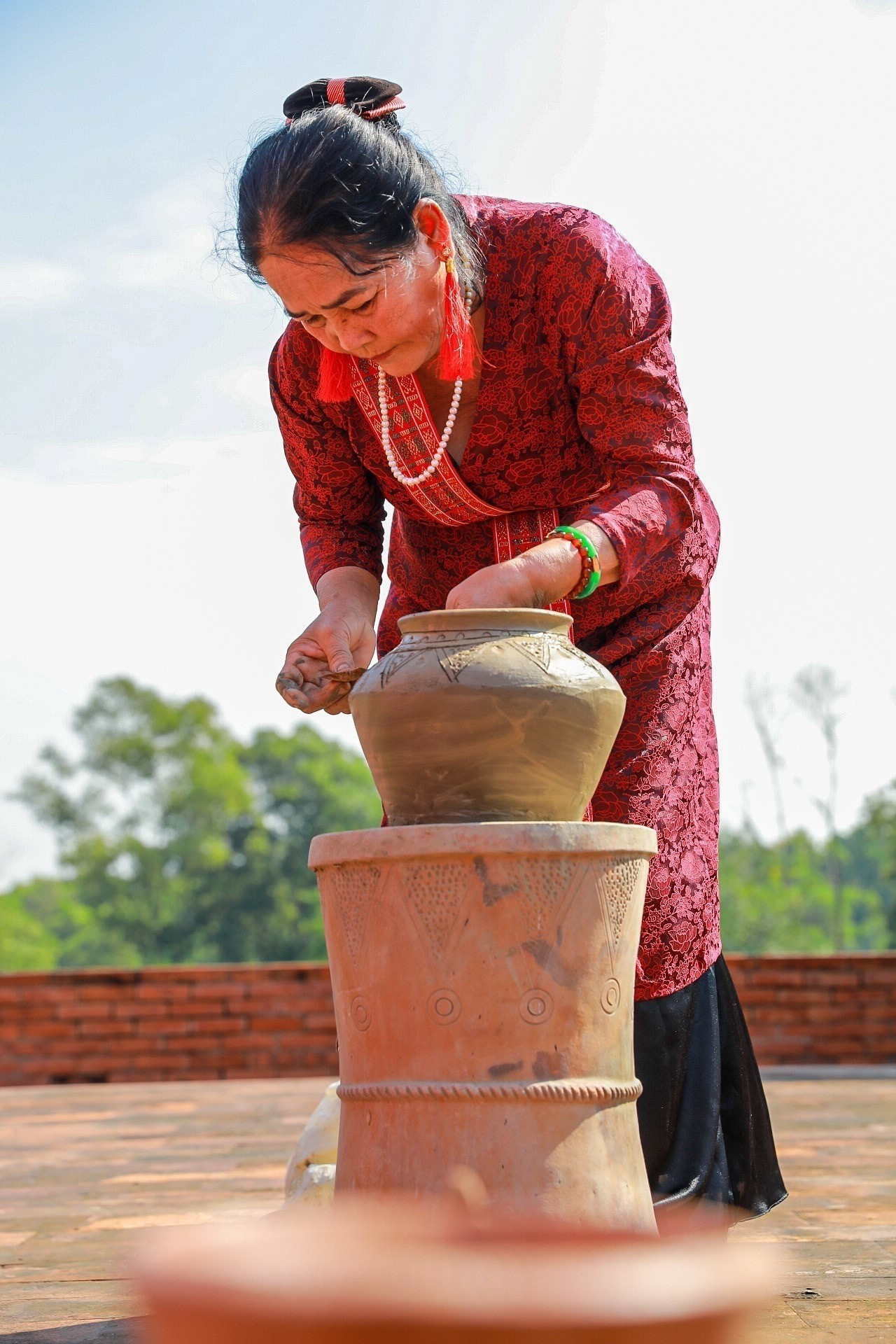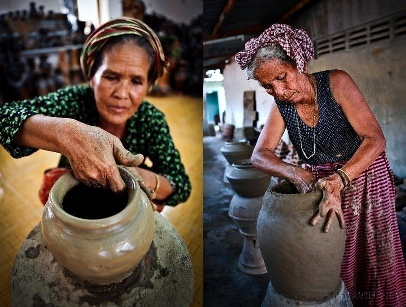 L'ethnie Cham de la province de Khanh Hoa présente l'art de la poterie Bau Truc. Photo : VNA