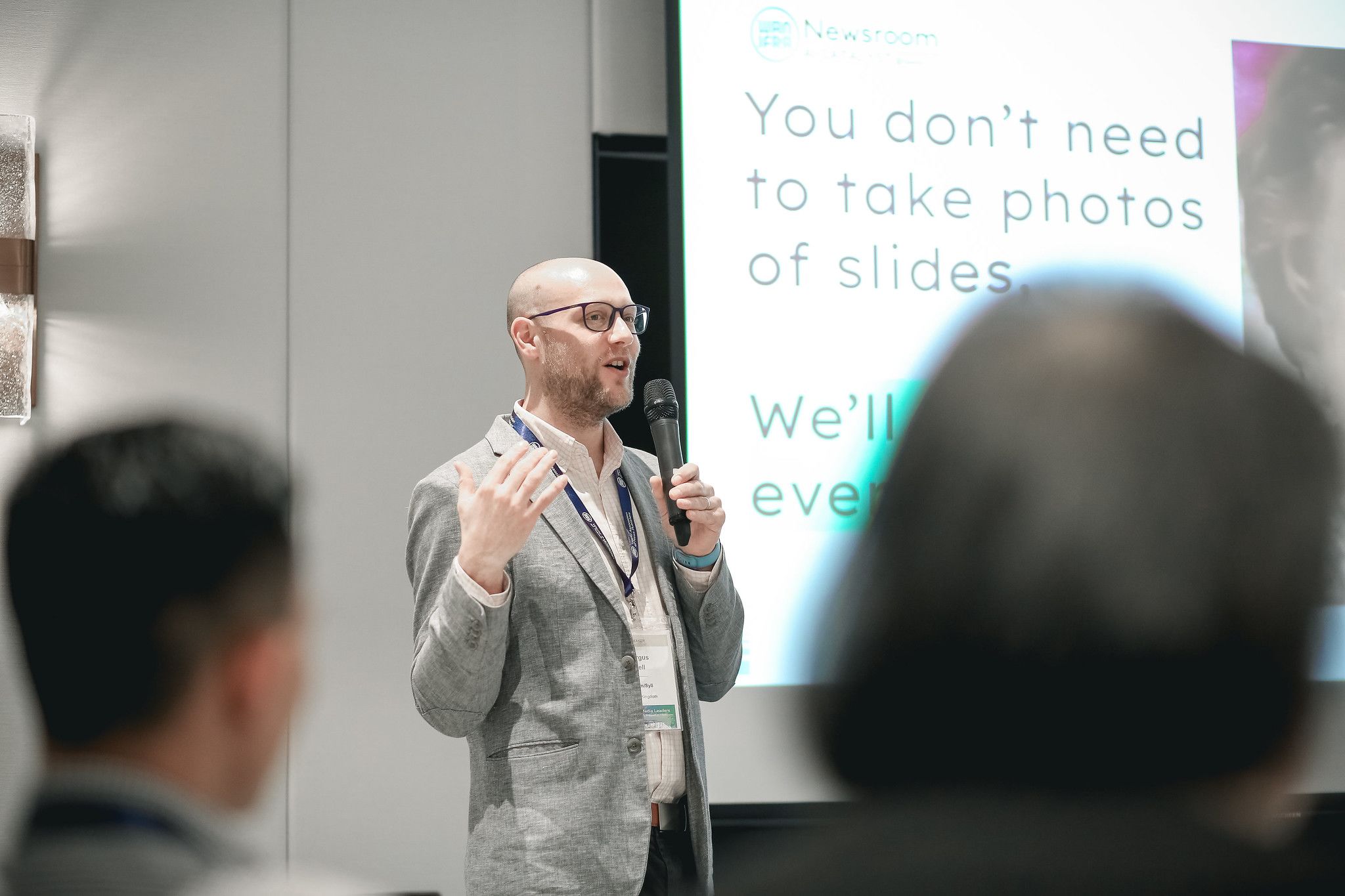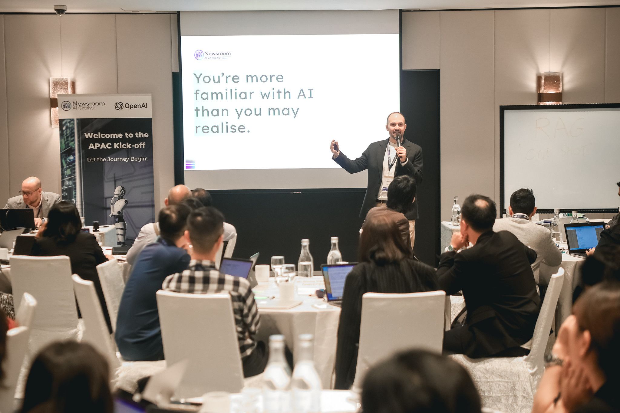 Les photos dans ce texte : Fergus Bell et Tom Trewinnard, experts, ont participé à l’enseignement dans le cadre du programme «Newsroom AI Catalyst 2024» de l’Association mondiale des éditeurs de journaux (AMJ) en novembre 2024.