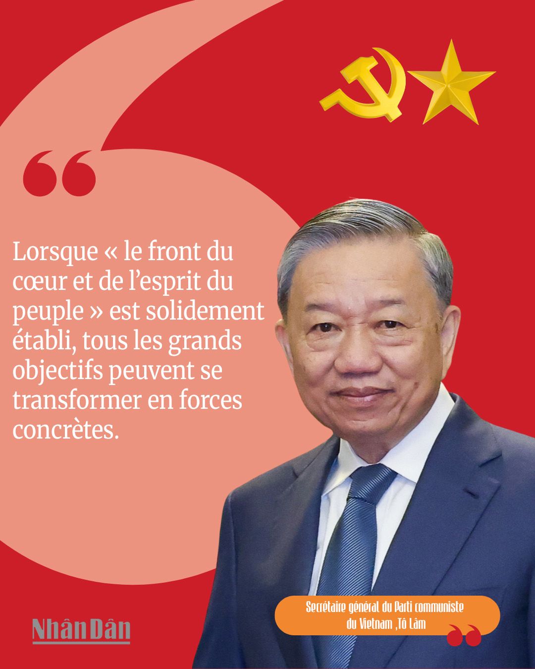 Notre pays est véritablement entré dans une nouvelle ère. Le XIVᵉ Congrès du Parti a fixé comme orientations l’autonomie stratégique, la confiance en soi, l’autosuffisance, la résilience, la fierté nationale et une avancée résolue dans la nouvelle ère, avec pour objectif de réussir d’ici 2030 à devenir un pays en développement doté d’une industrie moderne et d’un revenu intermédiaire supérieur ; d’atteindre un taux de croissance moyenne du PIB de plus de 10 % sur la période 2026-2030, et un revenu moyen par habitant de 8 500 dollars américains en 2030. Monsieur le Secrétaire général, quels sont, selon vous, les fondements pour atteindre ces objectifs ?