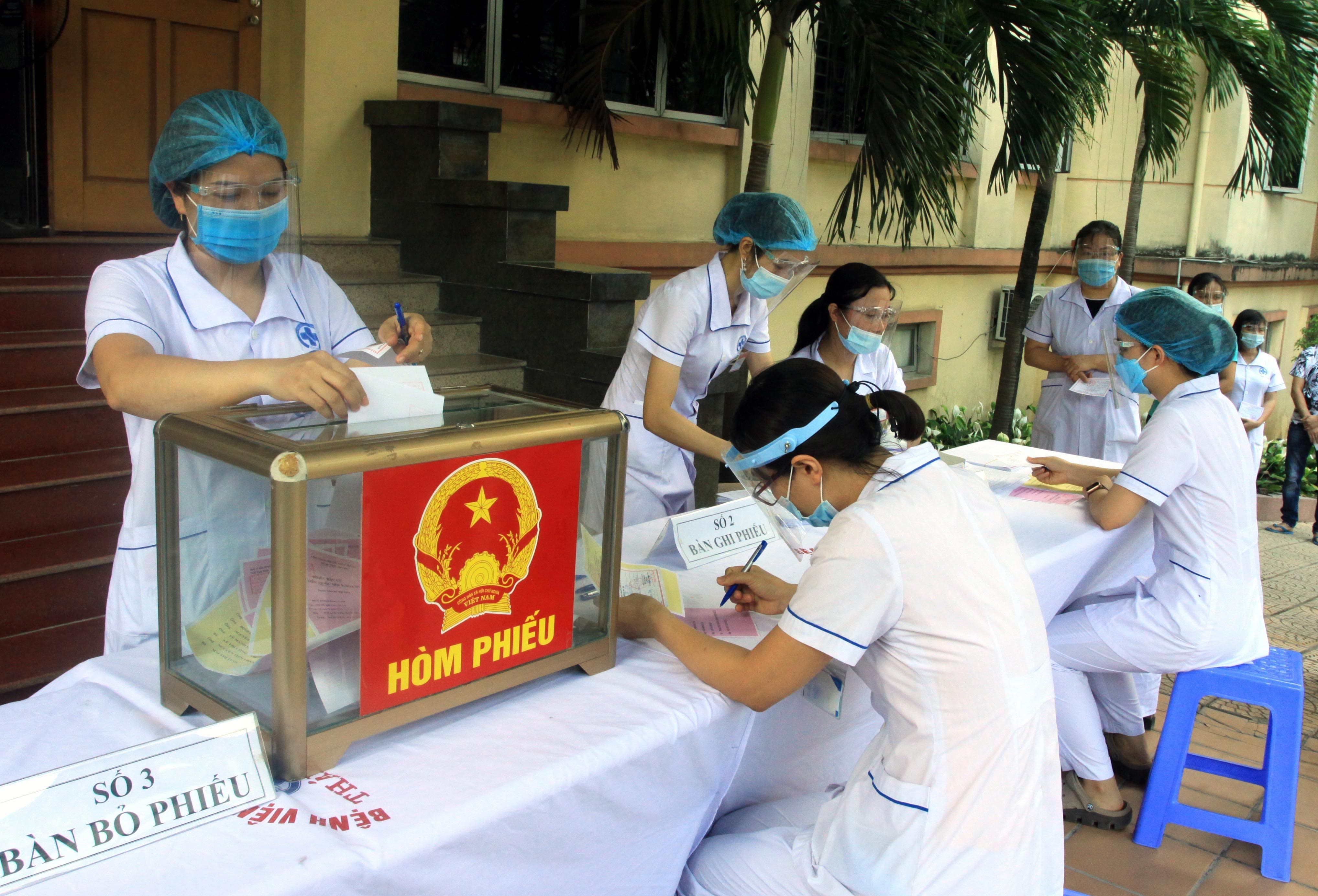 L'hôpital général provincial de Thai Binh a organisé le vote pour la XVe Assemblée nationale et les conseils populaires à tous les niveaux pour le mandat 2021-2026 à l'intention du personnel médical, des patients et de leurs familles actuellement placés en quarantaine en raison de la Covid-19.
