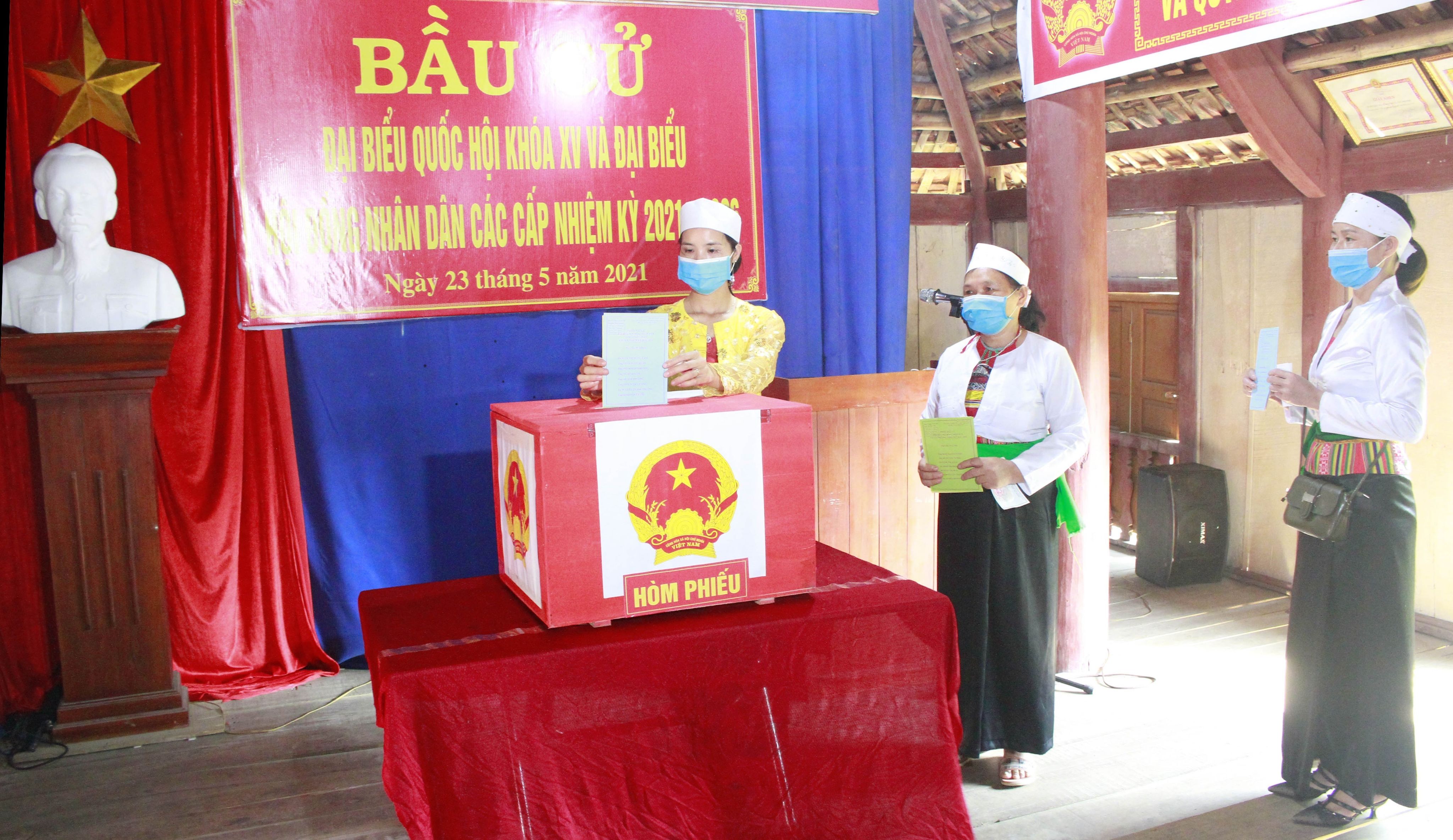 Les électeurs de la commune de Cuc Phuong, district de Nho Quan, province de Ninh Binh (au Nord du Vietnam), se rendent nombreux aux urnes pour élire les députés de l’Assemblée nationale de la XVᵉ législature et les représentants des Conseils populaires à tous les niveaux pour le mandat 2021-2026.