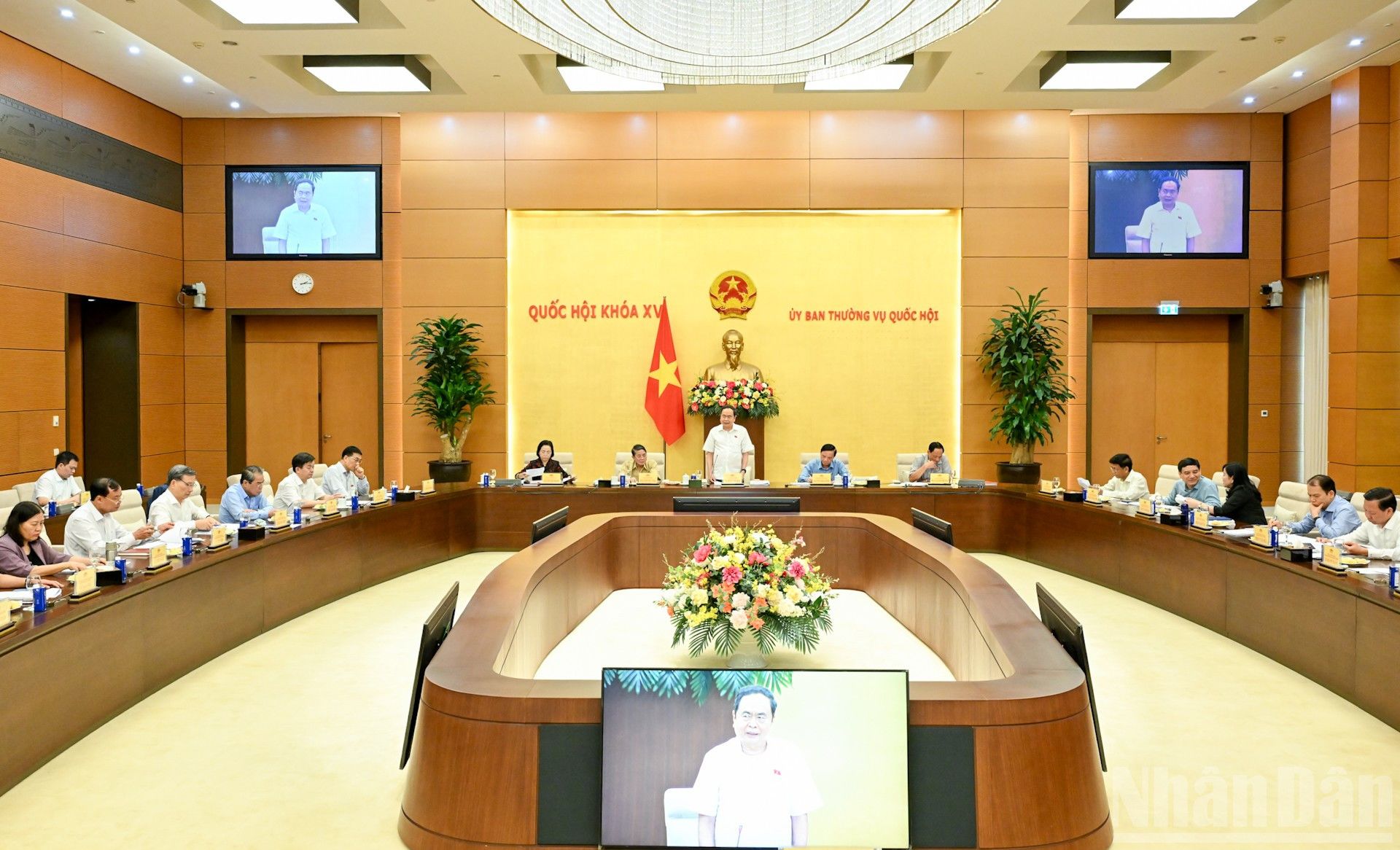 En application de ces dispositions, les séances du Comité permanent de l’Assemblée nationale sont organisées régulièrement, en principe chaque mois, afin d’examiner la préparation des sessions de l’Assemblée nationale, de donner des avis sur les contenus prévus pour ces sessions et de mener des activités de contrôle, notamment les interpellations et l’examen des rapports de supervision.