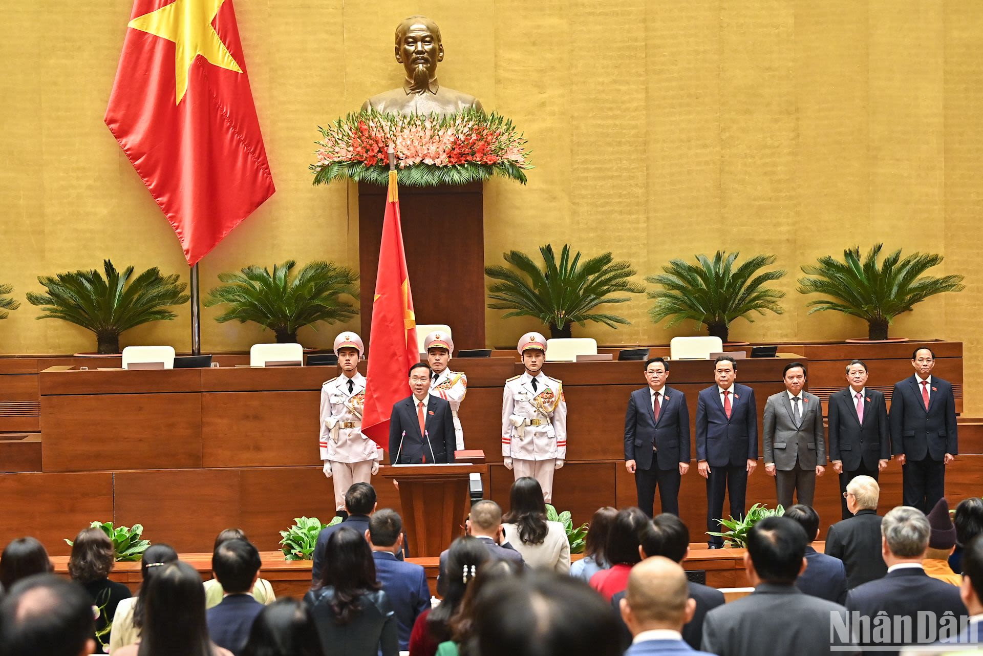 Le Président Vo Van Thuong a prêté serment sous le drapeau rouge à l’étoile d’or sacré de la Patrie, devant l’AN, devant les compatriotes et les électeurs du pays lors d’une cérémonie solennelle.