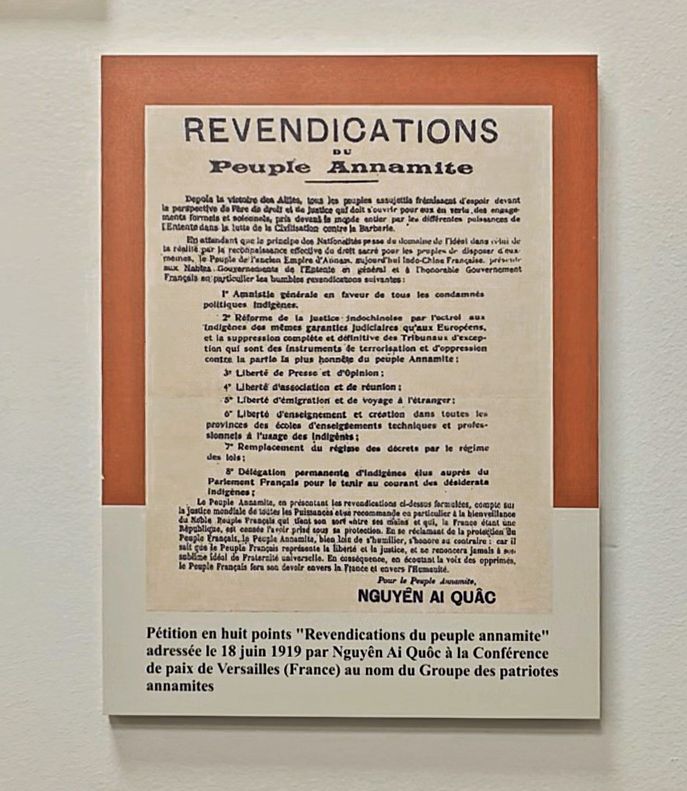 Les Revendications du peuple annamite est exposée dans l’Espace Hô Chi Minh du Musée de l’Histoire vivante (dans le Parc Montreau, ville de Montreuil, en banlieue de la capitale Paris, en France).