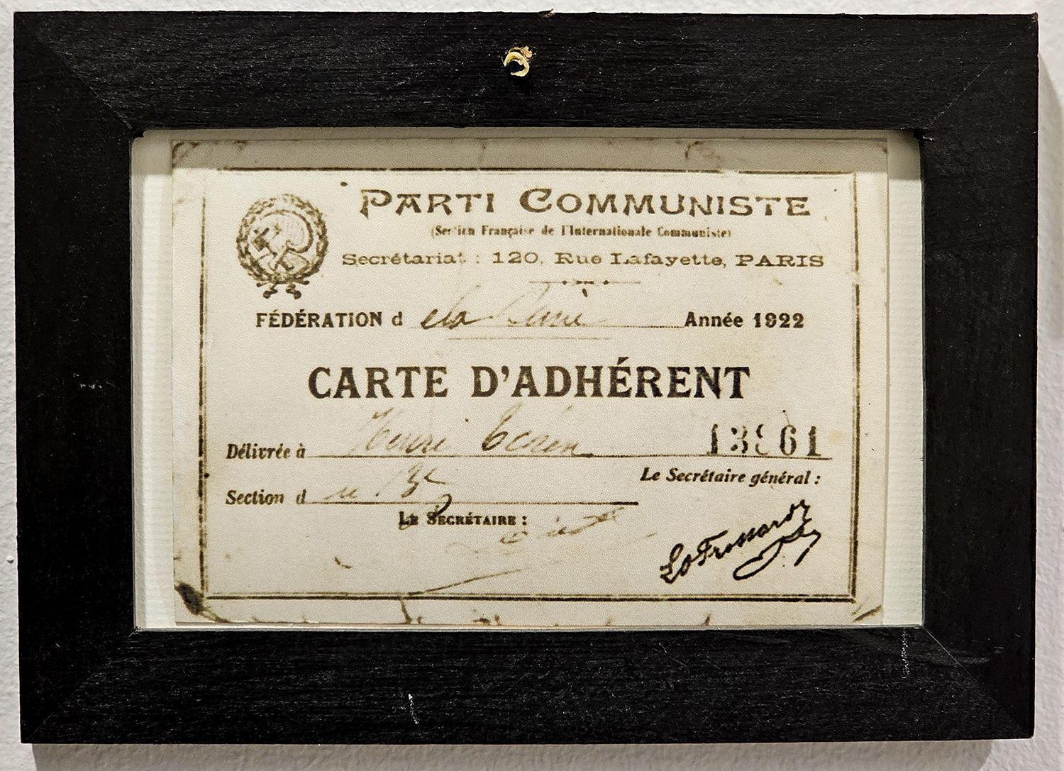 Carte de membre du Parti communiste de France du camarade Nguyen Ai Quoc sous le nom d'Henri Tchen, en 1922.