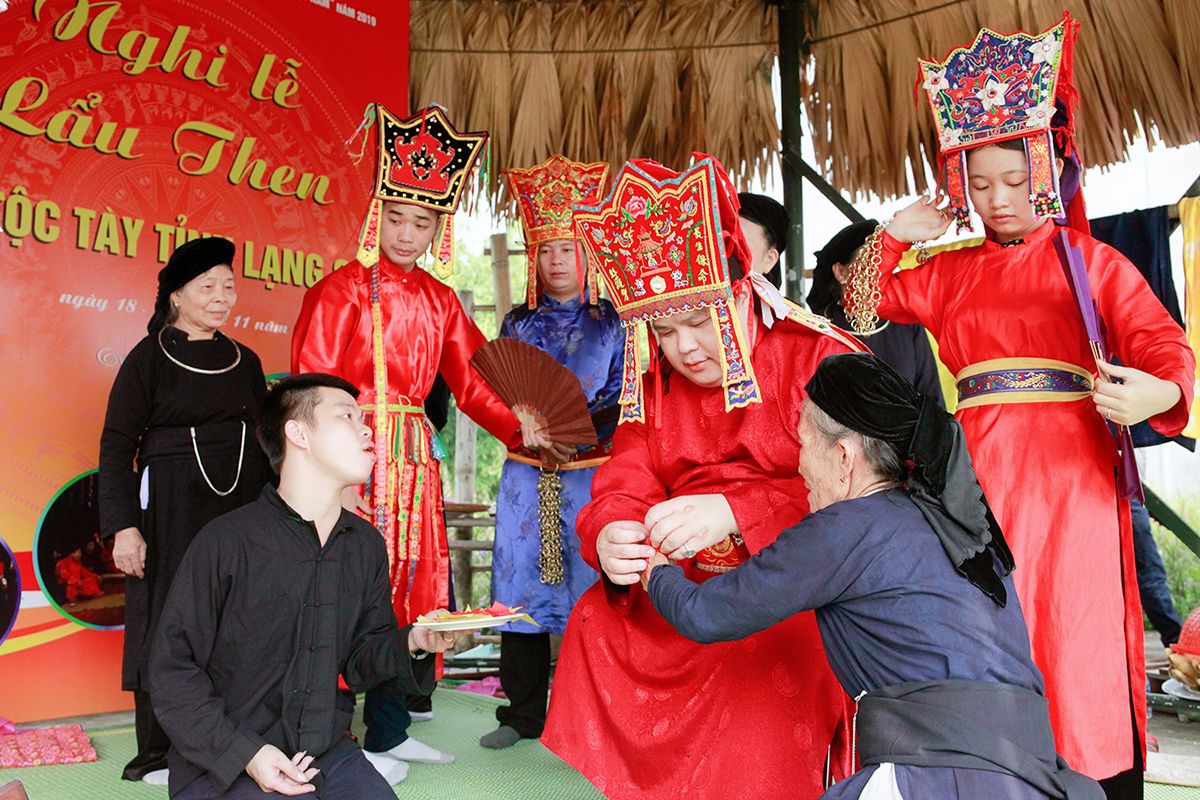 Les pratiques du then par les groupes ethniques Tày, Nùng et Thaï au Vietnam, ont été inscrites sur la liste représentative du patrimoine culturel immatériel de l’humanité, lors de la 14e session du Comité intergouvernemental pour la sauvegarde du patrimoine culturel immatériel, qui s’est tenue le 12 décembre 2019 à Bogota, en Colombie.
