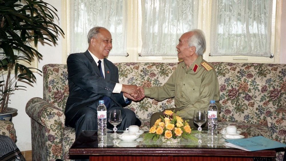 En 1947, dans la province de Quang Ngai, en tant que représentant du gouvernement lao de résistance, le camarade Khamtay Siphandone rencontra le camarade Pham Van Dông, représentant permanent du gouvernement de la République Démocratique du Vietnam dans le sud du Vietnam.