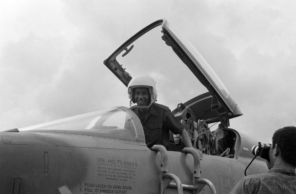 Le vice-Premier ministre et ministre de la Défense du Laos, Khamtay Siphandone, monte à bord d'un avion P5 lors de sa visite au commandement de la région militaire 7 et à l'aéroport de Bien Hoa, au Vietnam (en 1977). Photo d’archives : VNA.