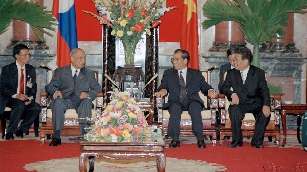 Le secrétaire général du Parti, Lê Kha Phiêu rencontre le président du Parti et président de la République démocratique populaire lao, Khamtay Siphandone, lors de sa visite officielle d’amitié au Vietnam en 1999. Photo : VNA.