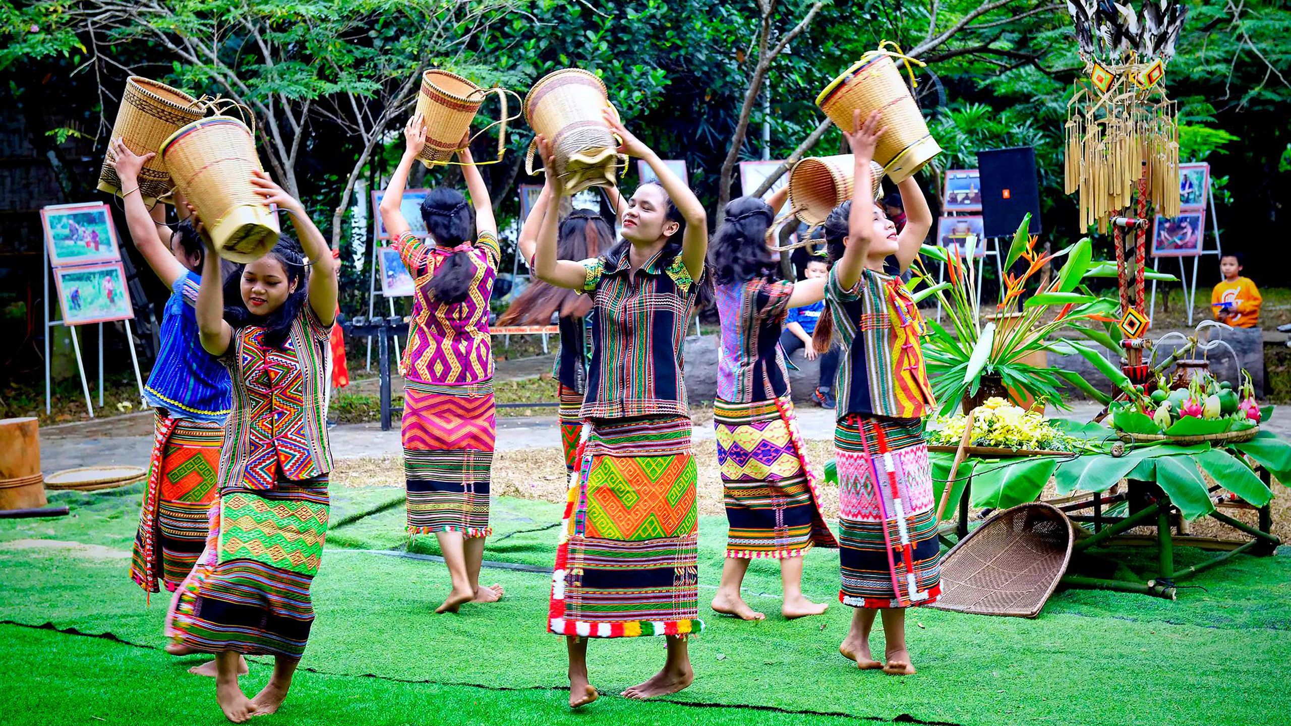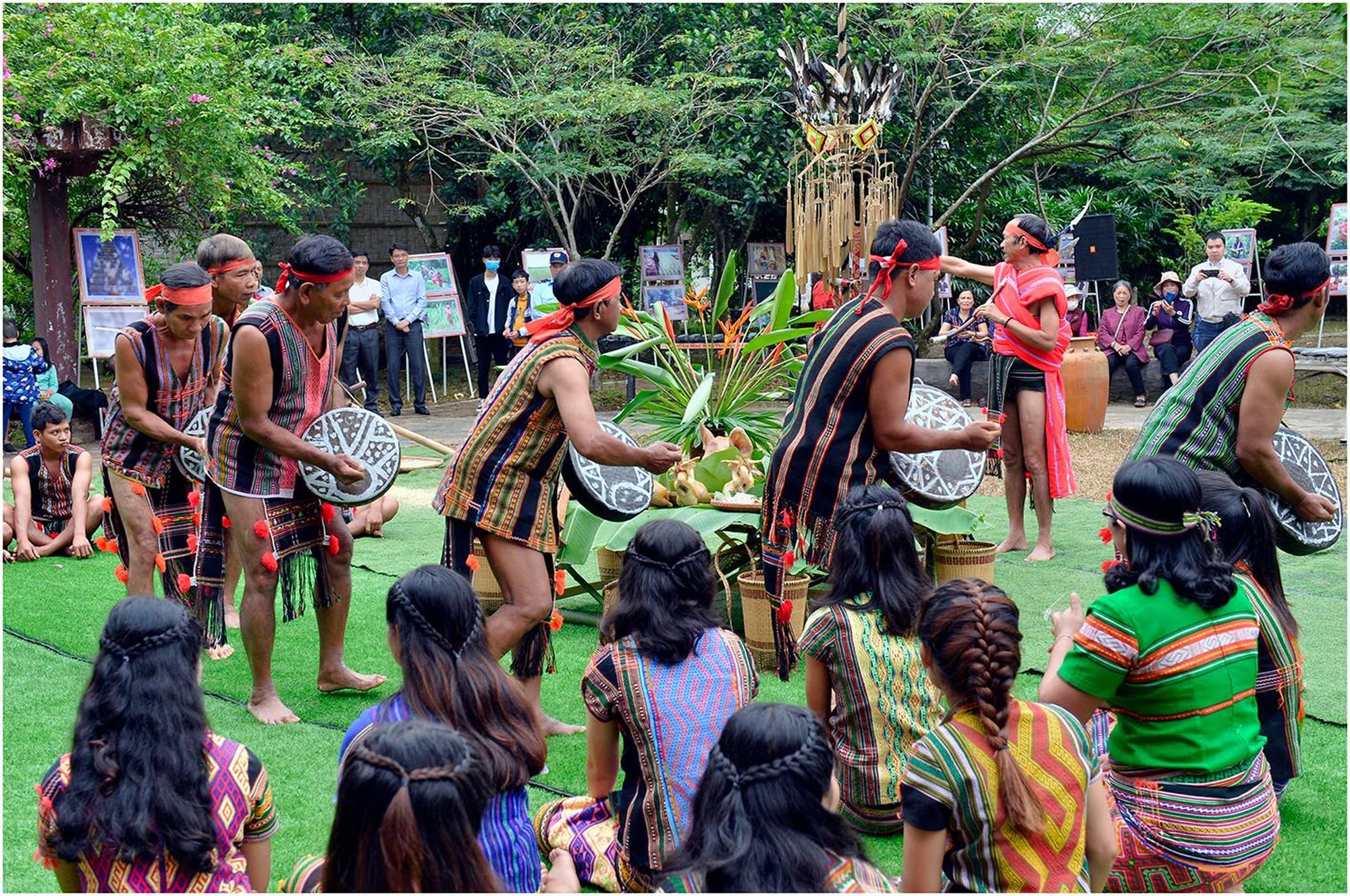 Les hommes et femmes S’tiêng en costumes traditionnels. Photo : Village culturel et touristique des ethnies du Vietnam