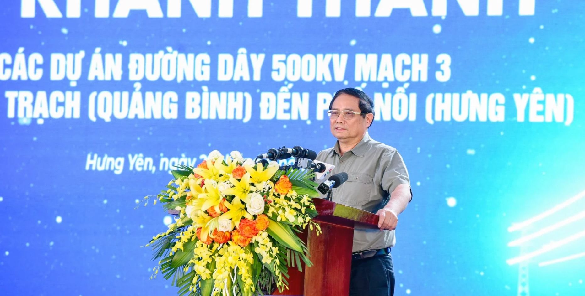 Le Premier ministre Pham Minh Chinh lors de la cérémonie d'inauguration de la ligne électrique 500 kV - circuit 3, le 29 août 2024 dans la province de Hung Yen, au Nord du Vietnam.