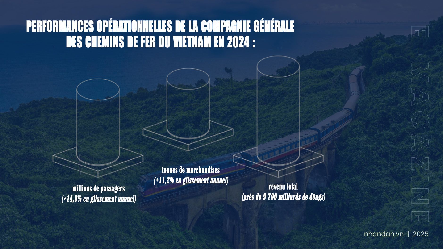 En 2024, malgré les lourds impacts des catastrophes naturelles et des inondations, la Compagnie générale a obtenu des résultats positifs, dépassant les prévisions tant sur le volume de passagers (7,02 millions de voyageurs, en hausse de 14,8 %) que sur le fret (5,16 millions de tonnes, en hausse de 11,2 %), pour un chiffre d’affaires total avoisinant 9,7 mille milliards de dôngs.