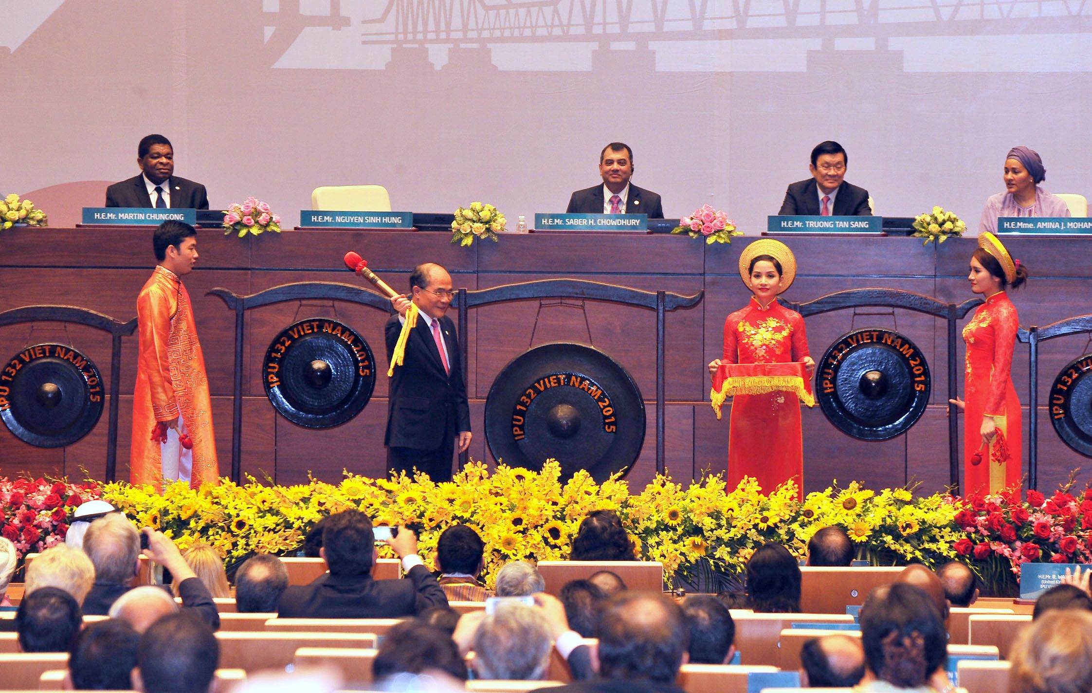 Le président de l’Assemblée nationale, Nguyen Sinh Hung, effectue la cérémonie d’ouverture de l’IPU-132. Photo : quochoi.vn