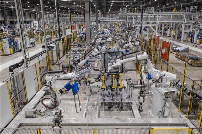 La production et l'exportation de voitures électriques par VinFast vers de nombreux marchés étrangers contribuent progressivement à asseoir la position du Vietnam sur la carte mondiale de l'industrie automobile. Photo : VNA.