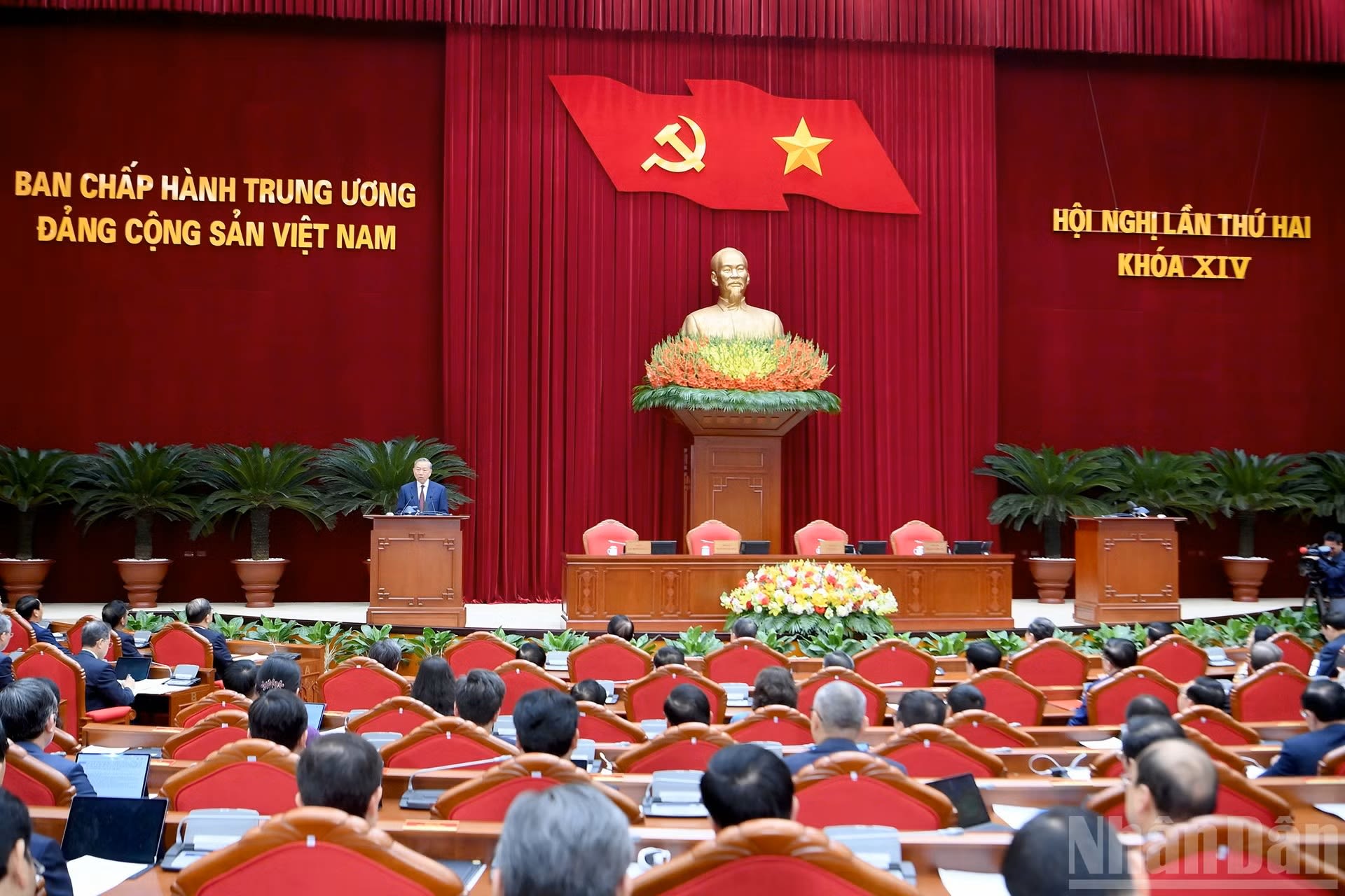 Le Secrétaire général du PCV To Lam prononce le discours de clôture du deuxième Plénum du Comité central du PCV (XIVe mandat).