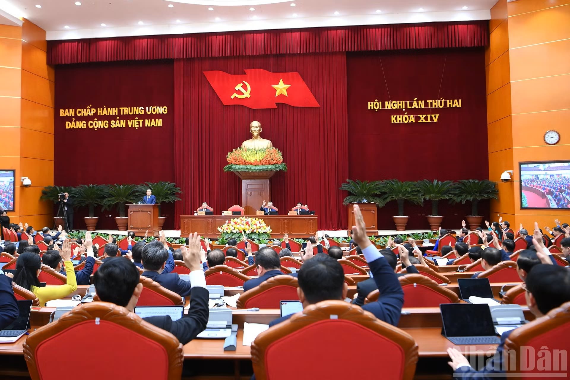 Les délégués votent pour l'adoption du projet de Résolution du deuxième Plénum du Comité central.