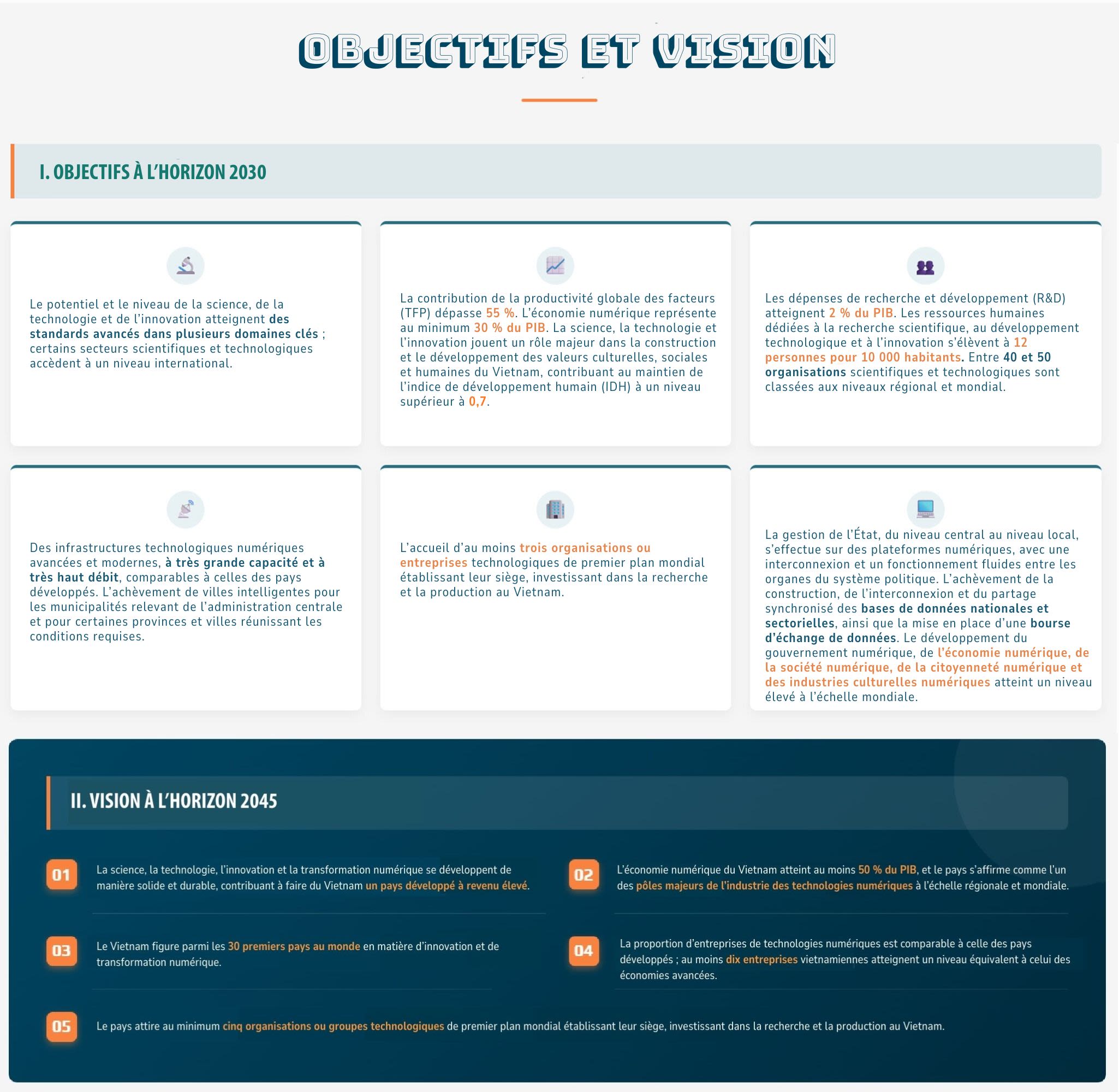 5. Accélérer la transformation numérique et l’application de la science, de la technologie et de l’innovation au sein des organes du système politique, afin d’améliorer l’efficacité de la gouvernance nationale et l’effectivité de la gestion publique dans tous les domaines, tout en garantissant la défense et la sécurité nationales.