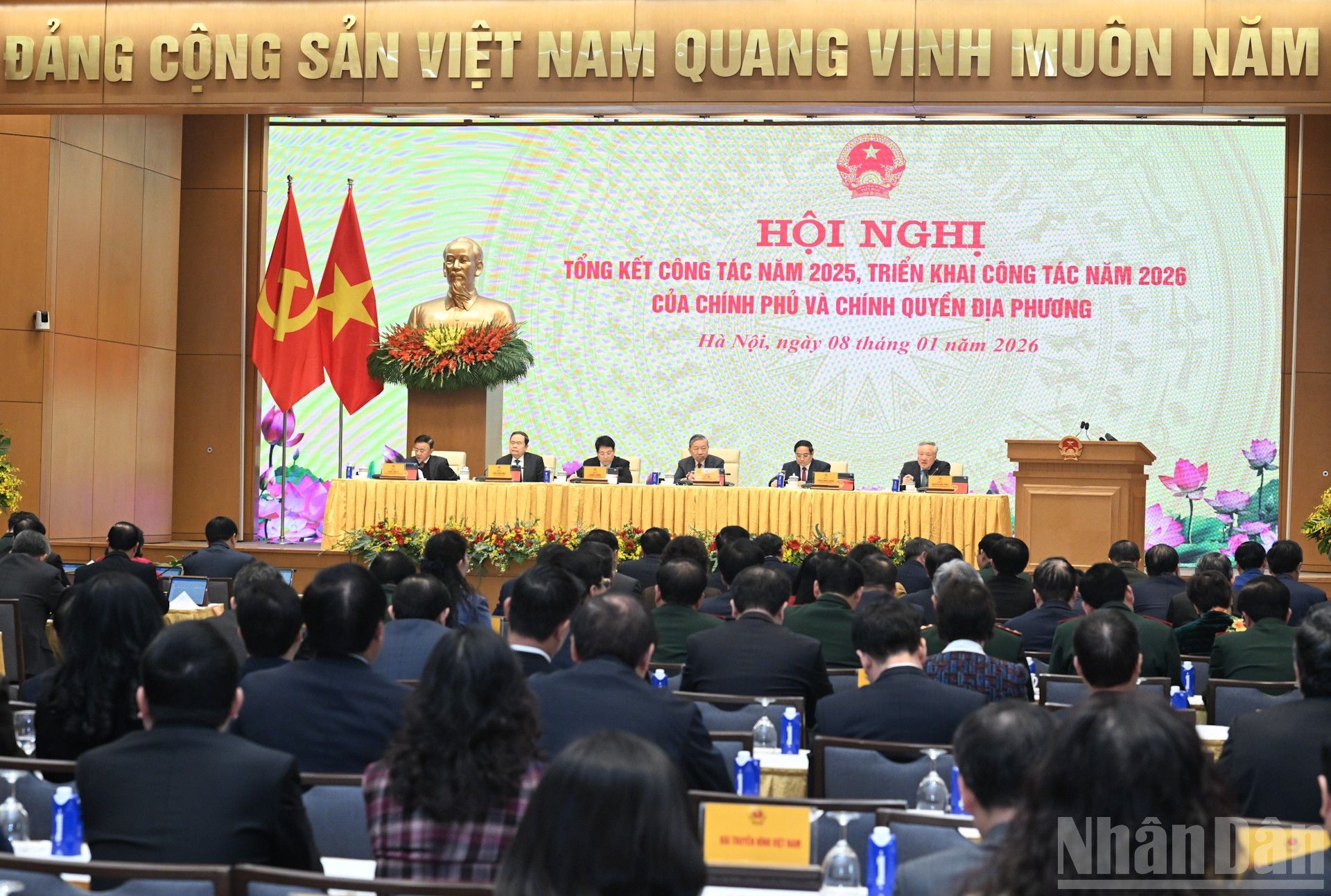 Dans l’atmosphère réjouissante de ces premiers jours de l’année 2026, vers le XIVᵉ Congrès national du Parti et à l’approche du Têt traditionnel du Nouvel An du Cheval, j’ai le grand plaisir de participer à la conférence nationale en ligne consacrée au bilan des activités de 2025 et au lancement des tâches pour 2026 du gouvernement et des administrations locales.