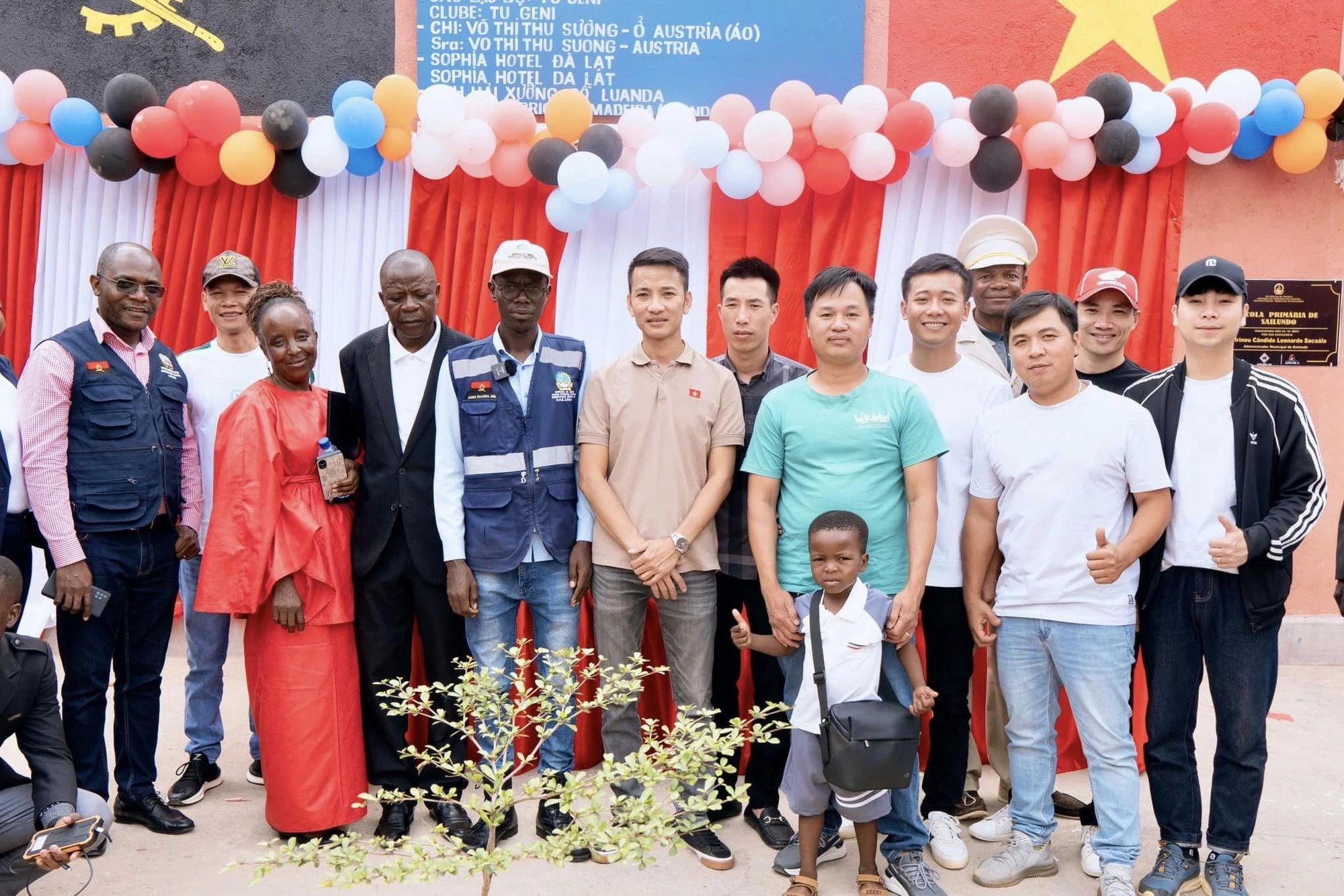 Lorsque Quang Linh est attaché à la population angolaise, il fait toujours de son mieux non seulement pour la faire avoir à manger à suffisance, mais aussi pour que les enfants aient le meilleur développement possible. Dans les zones rurales pauvres, les gens ont encore beaucoup d’enfants, mais ils ne les laissent pas aller à l’école, ils doivent donc rester à la maison pour travailler. Quang Linh est donc allé au village pour encourager les gens à envoyer leurs enfants à l’école. Il a passé 2 ans à construire des écoles et il a maintenant construit de nombreuses écoles, aidant ainsi environ 5 000 enfants angolais à aller à l’école.