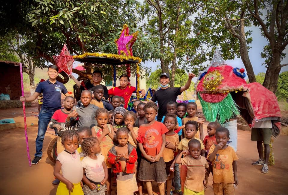 La Team Africa a célébré le Têt traditionnel vietnamien dans le village. Ils confectionnent des banh chung, préparent des rouleaux de printemps et des plats du Têt et invitent les gens à les déguster. Lors de la Fête de la Mi-automne, ils ont également décoré le bureau avec des lanternes d’étoiles et des portraits de l’oncle Hô. Ils ont également organisé la Journée des enseignants vietnamiens et sont venus offrir des fleurs aux enseignants des écoles.