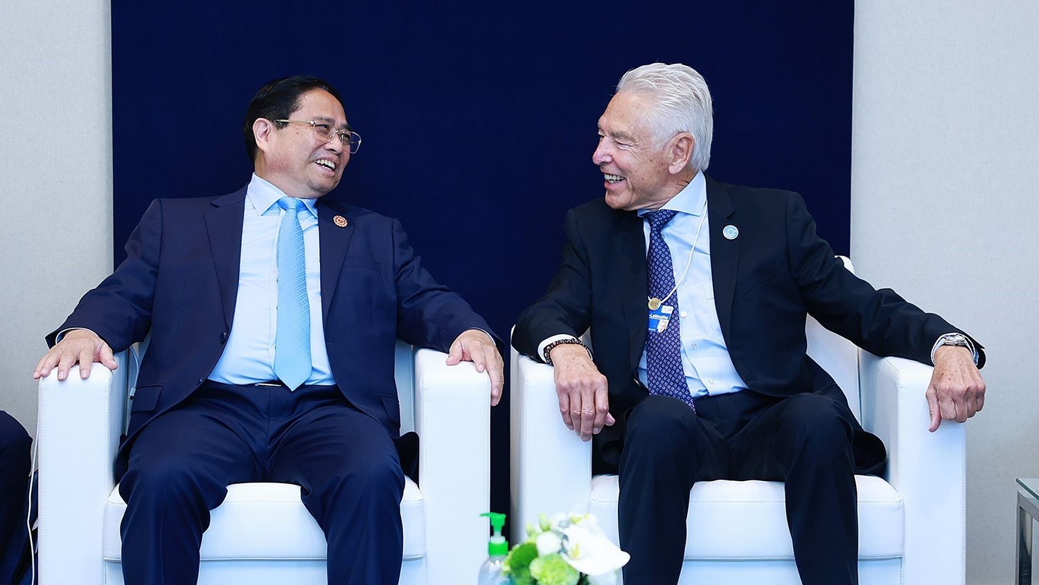 Le Premier ministre Pham Minh Chinh a participé à un dialogue politique avec Borge Brende, président exécutif du FEM. Photo : VNA.