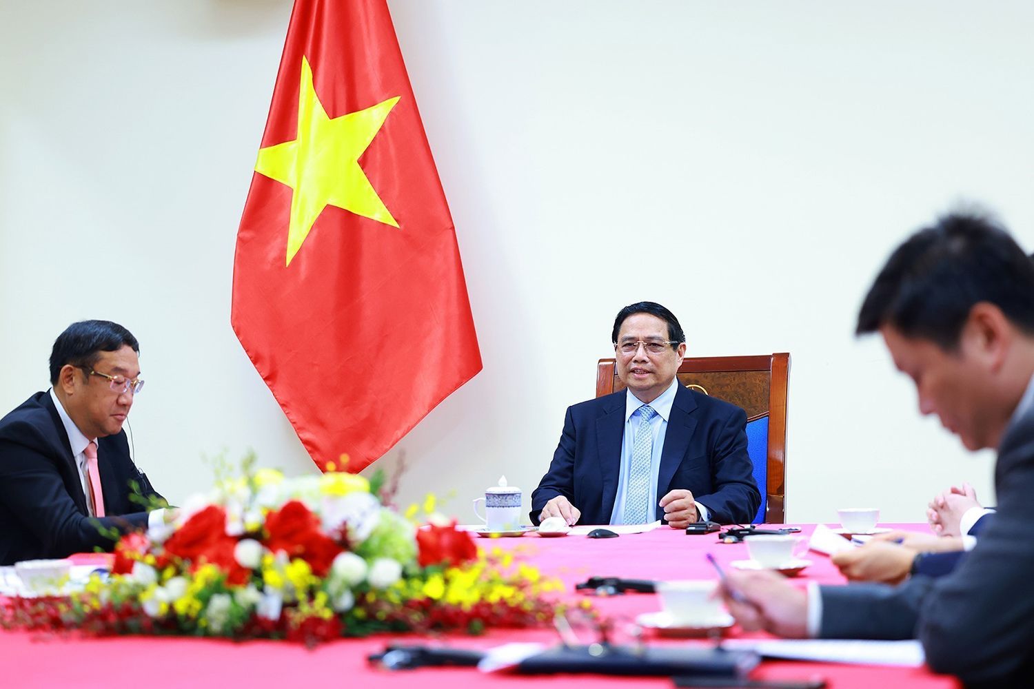 Le Premier ministre vietnamien Pham Minh Chinh s’est entretenu par visioconférence avec son homologue malaisien Anwar Ibrahim, depuis Hanoï, le 28 avril 2025. Photo : VNA.