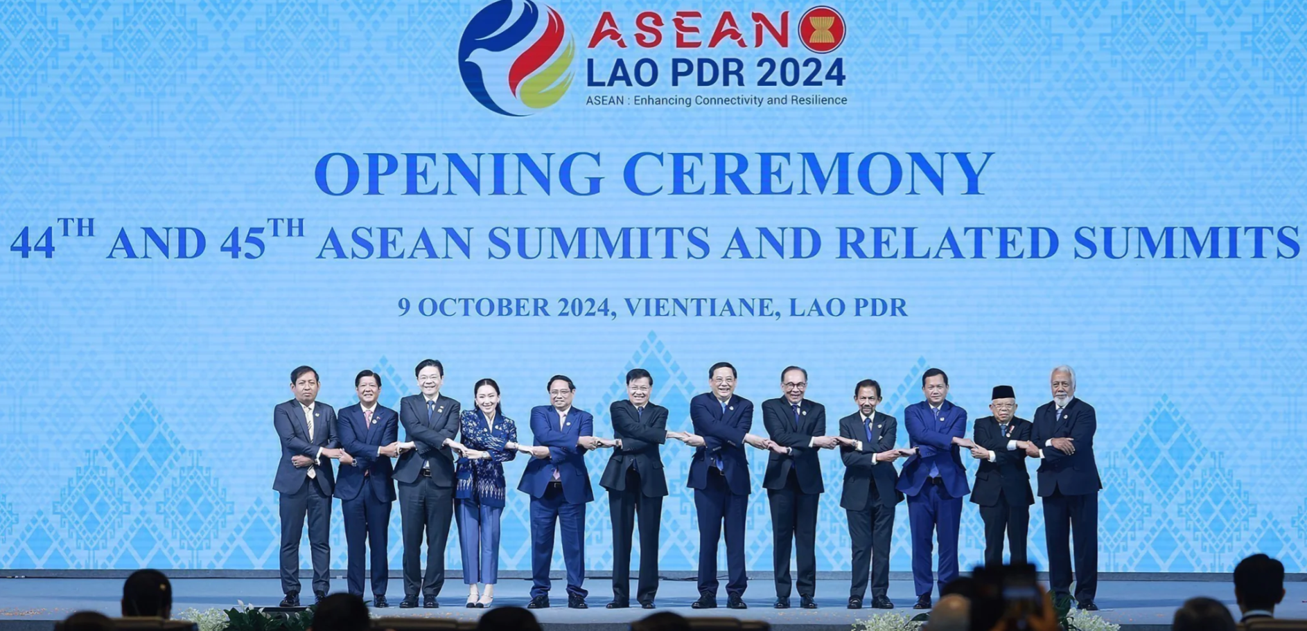 Le 9 octobre 2024, le Premier ministre Pham Minh Chinh et les chefs de délégation ont posé pour la photo officielle lors de la session plénière du 44e Sommet de l’ASEAN. Photo : VNA.