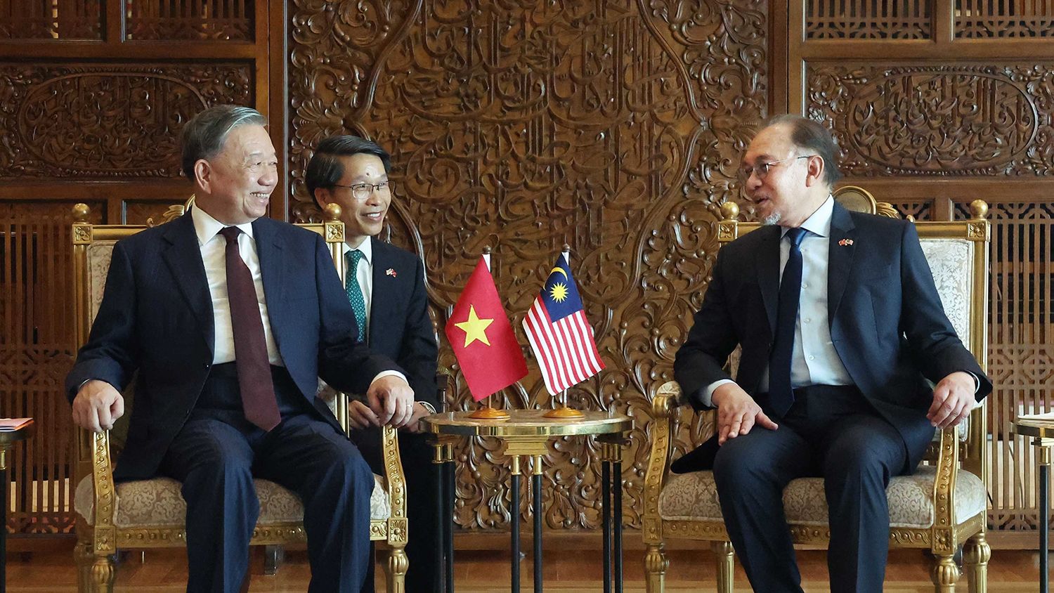 Lors de la visite officielle en Malaisie du secrétaire général To Lam le 21 novembre 2024, les deux parties ont convenu de faire évoluer les relations Vietnam-Malaisie vers un partenariat stratégique intégral. Sur la photo : le secrétaire général To Lam et le Premier ministre malaisien Anwar Ibrahim tiennent une réunion restreinte. Photo : VNA.