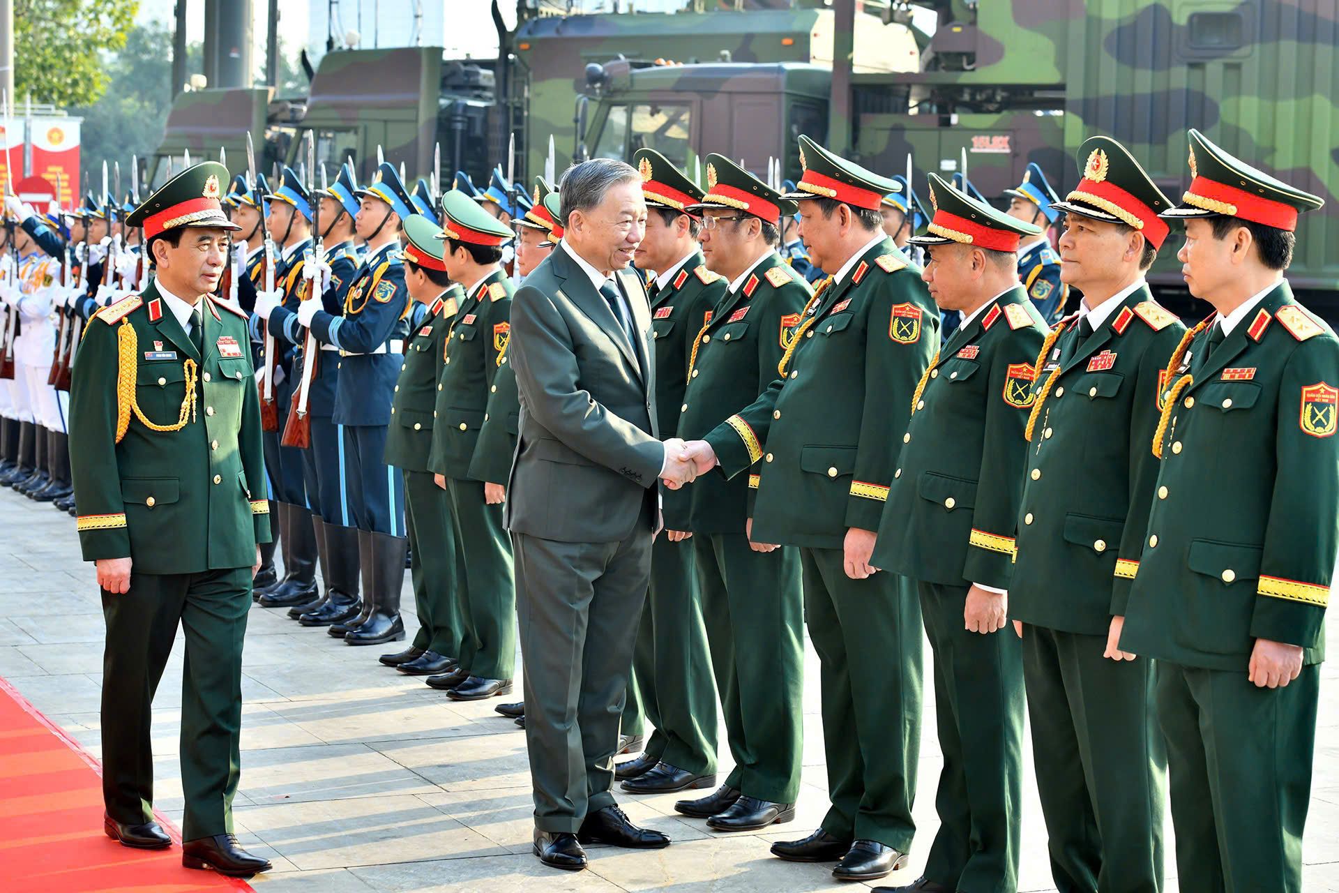 Cérémonie d'accueil du secrétaire général To Lam pour assister au 80e anniversaire de la fondation de l'Armée populaire du Vietnam. Photo : DANG KHOA/NDEL.