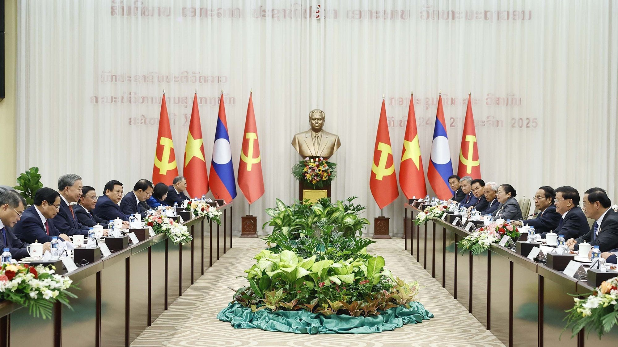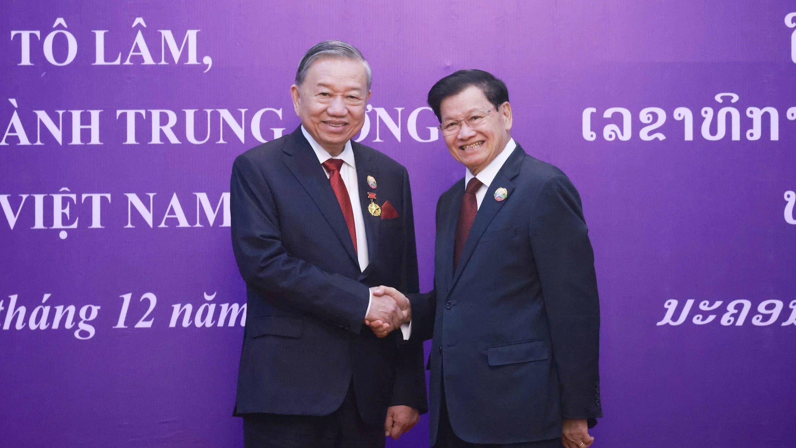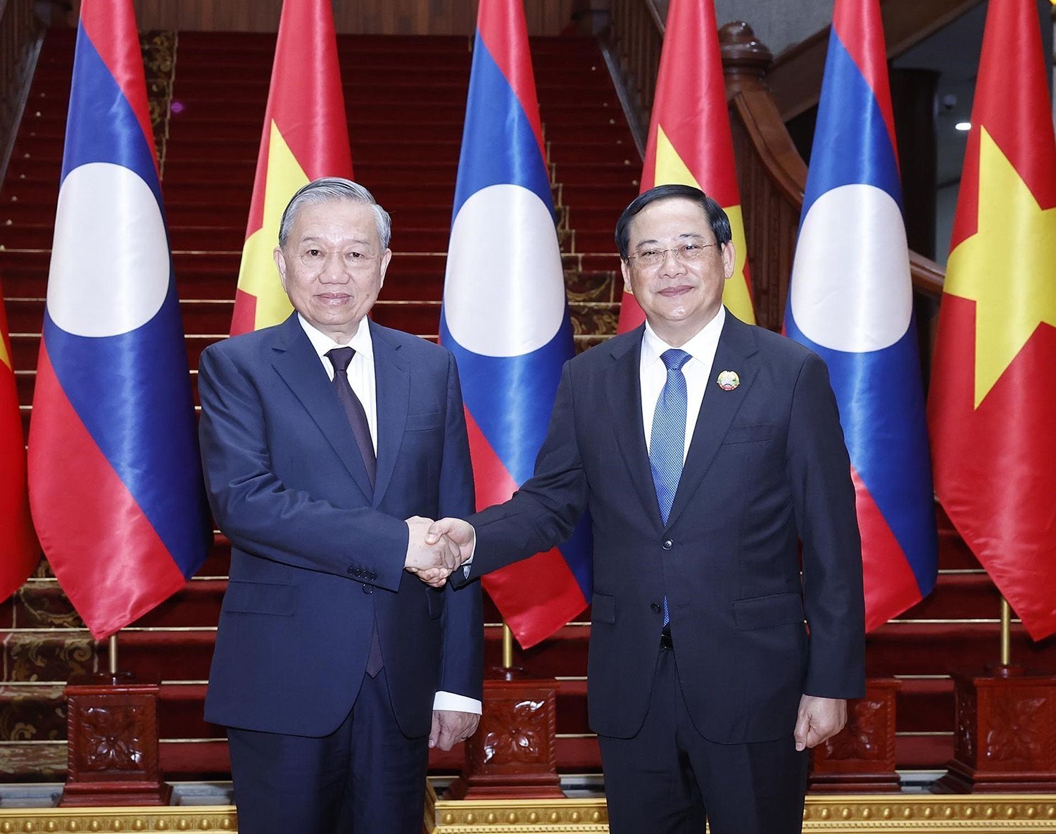 Lors de l’entretien avec le Secrétaire général et président du Laos, Thongloun Sisoulith, le Secrétaire général du PCV To Lam a souligné que cette visite réaffirme une fois de plus la ligne diplomatique constante du Vietnam, qui accorde toujours la plus haute priorité à la relation de solidarité spéciale avec le Laos.