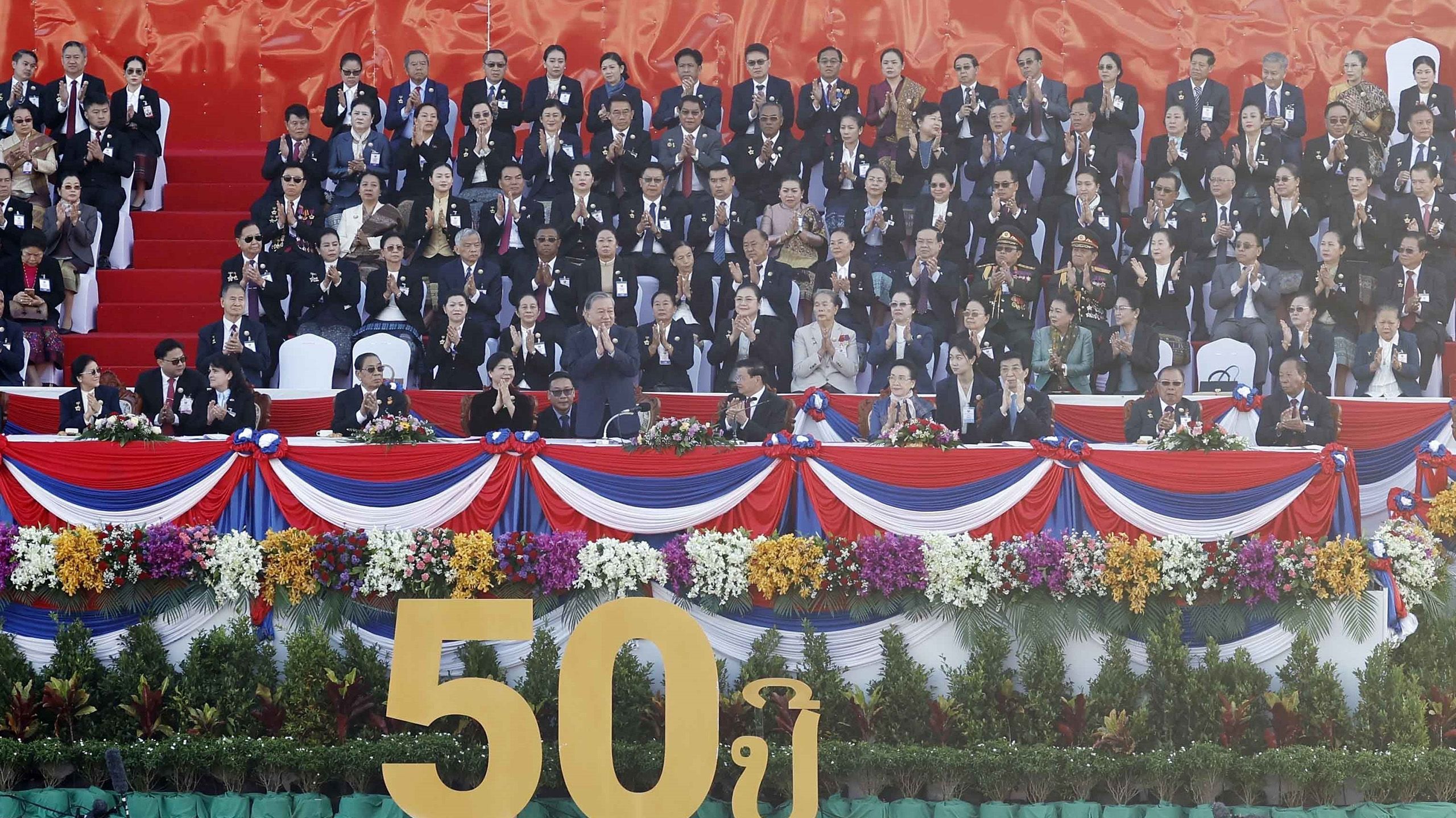 La cérémonie célébrant le 50ᵉ anniversaire de la Fête nationale de la République démocratique populaire lao s’est tenue solennellement sur la place That Luang, à Vientiane.