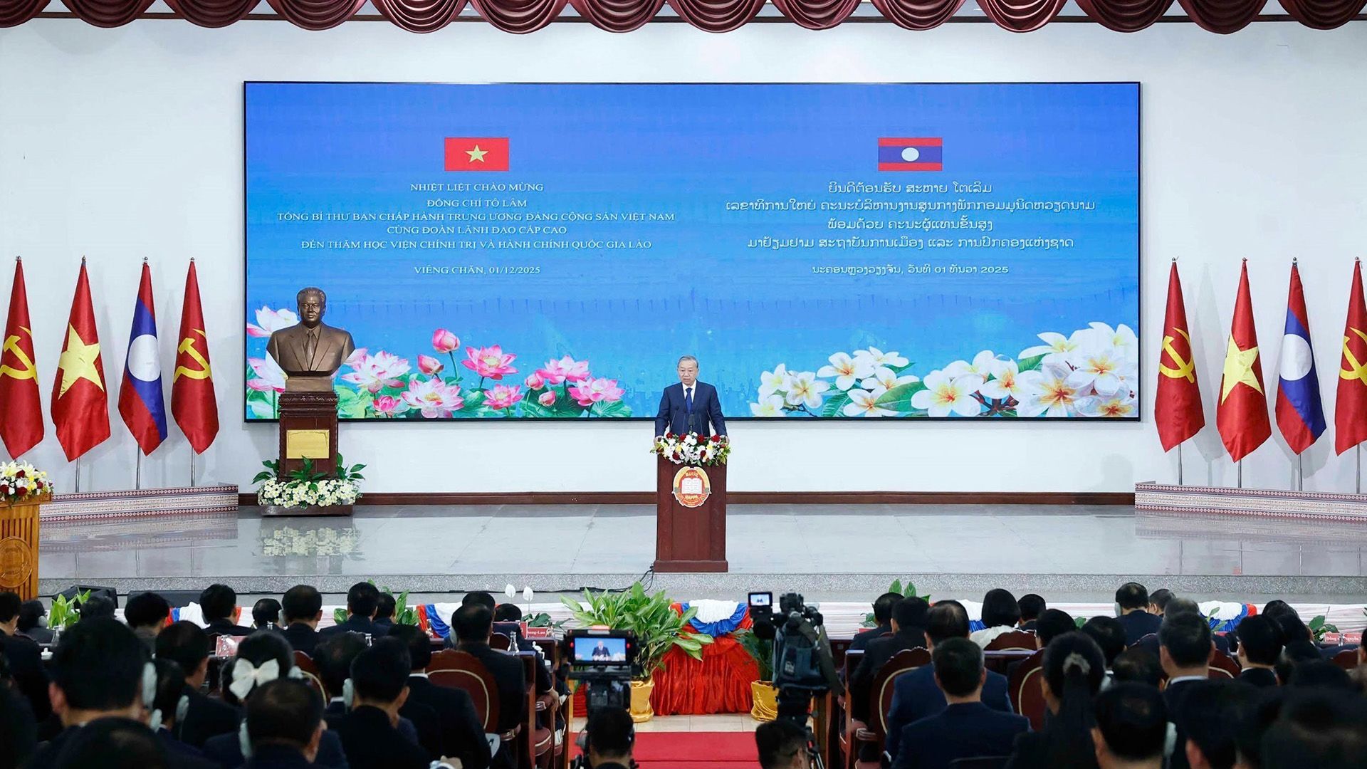 En visitant l’Académie nationale de politique et d’administration publique du Laos, le Secrétaire général du PCV To Lam a prononcé un discours de politique générale intitulé : « Hériter de la grande amitié, renforcer la solidarité spéciale, consolider la coopération intégrale et promouvoir le lien stratégique Vietnam-Laos dans la nouvelle période ».