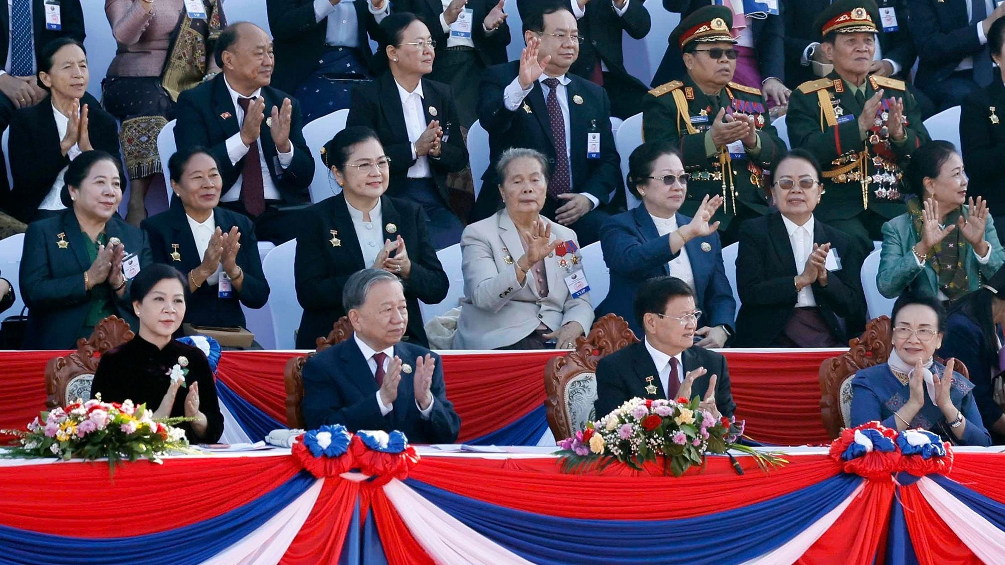 Le Secrétaire général To Lam et son épouse participent à la cérémonie marquant le 50ᵉ anniversaire de la Fête nationale de la République démocratique populaire lao. Photo : VNA.