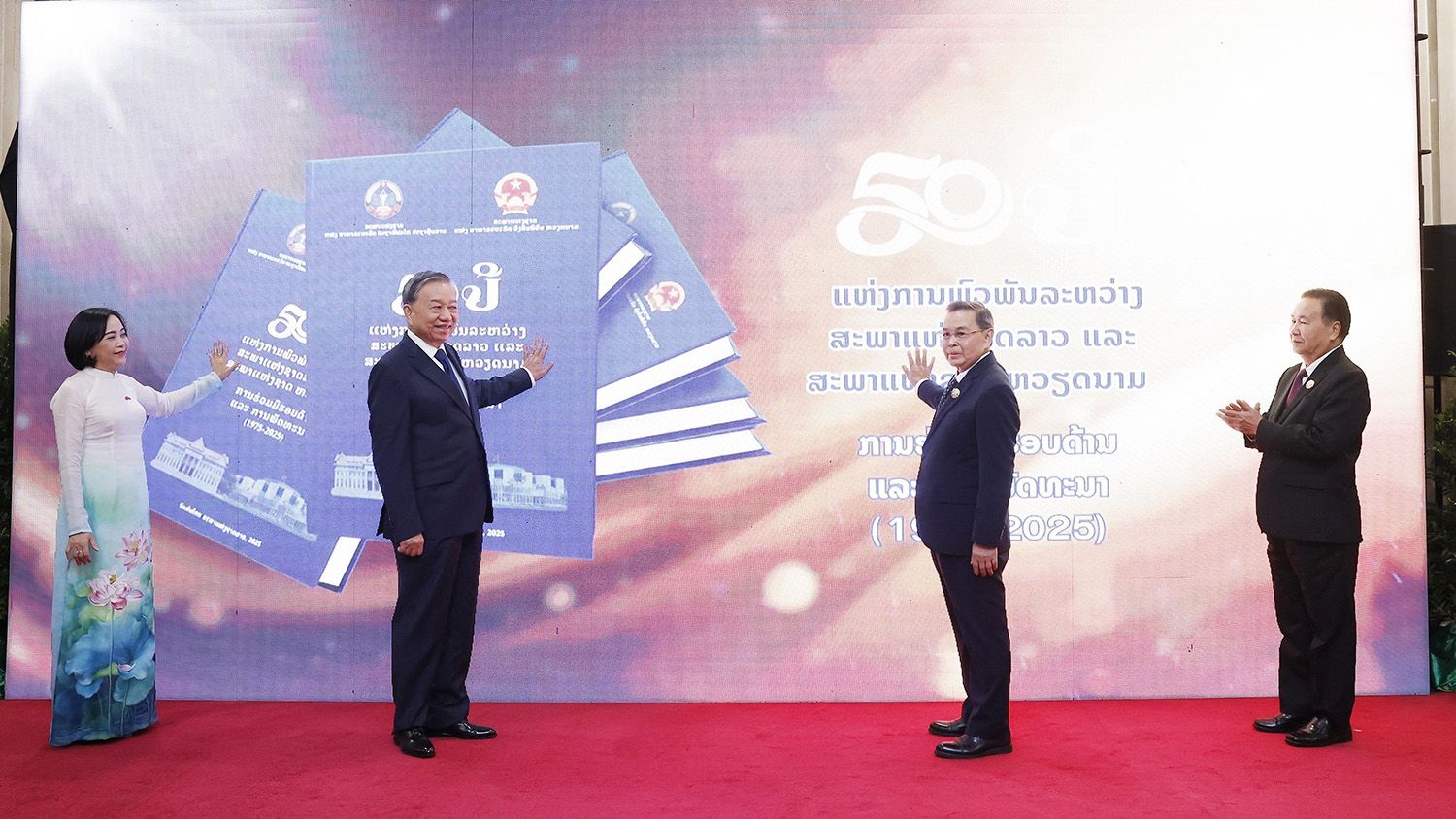 Lors de cette visite, il a aussi assisté, aux côtés du président laotien, à la signature de douze documents de coopération importants liant ministères, collectivités et agences des deux pays, ainsi qu’à l’inauguration du livre numérique commémoratif « 50 ans de relations entre les Parlements laotien et vietnamien – Coopération et Développement (1975‑2025) ».