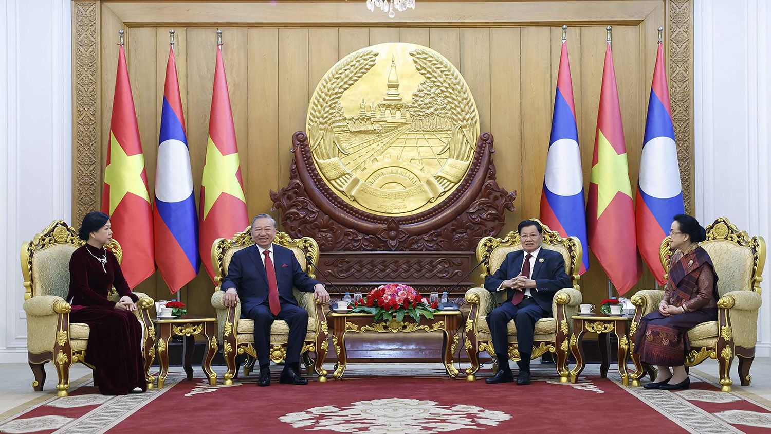 La visite d’État au Laos, la participation à la cérémonie célébrant le 50ᵉ anniversaire de la Fête nationale de la République démocratique populaire lao, ainsi que la coprésidence de la réunion de haut niveau entre le Parti communiste du Vietnam et le Parti populaire révolutionnaire lao par le Secrétaire général du PCV To Lam, son épouse et la délégation vietnamienne de haut rang, ont été couronnées d’un immense succès.