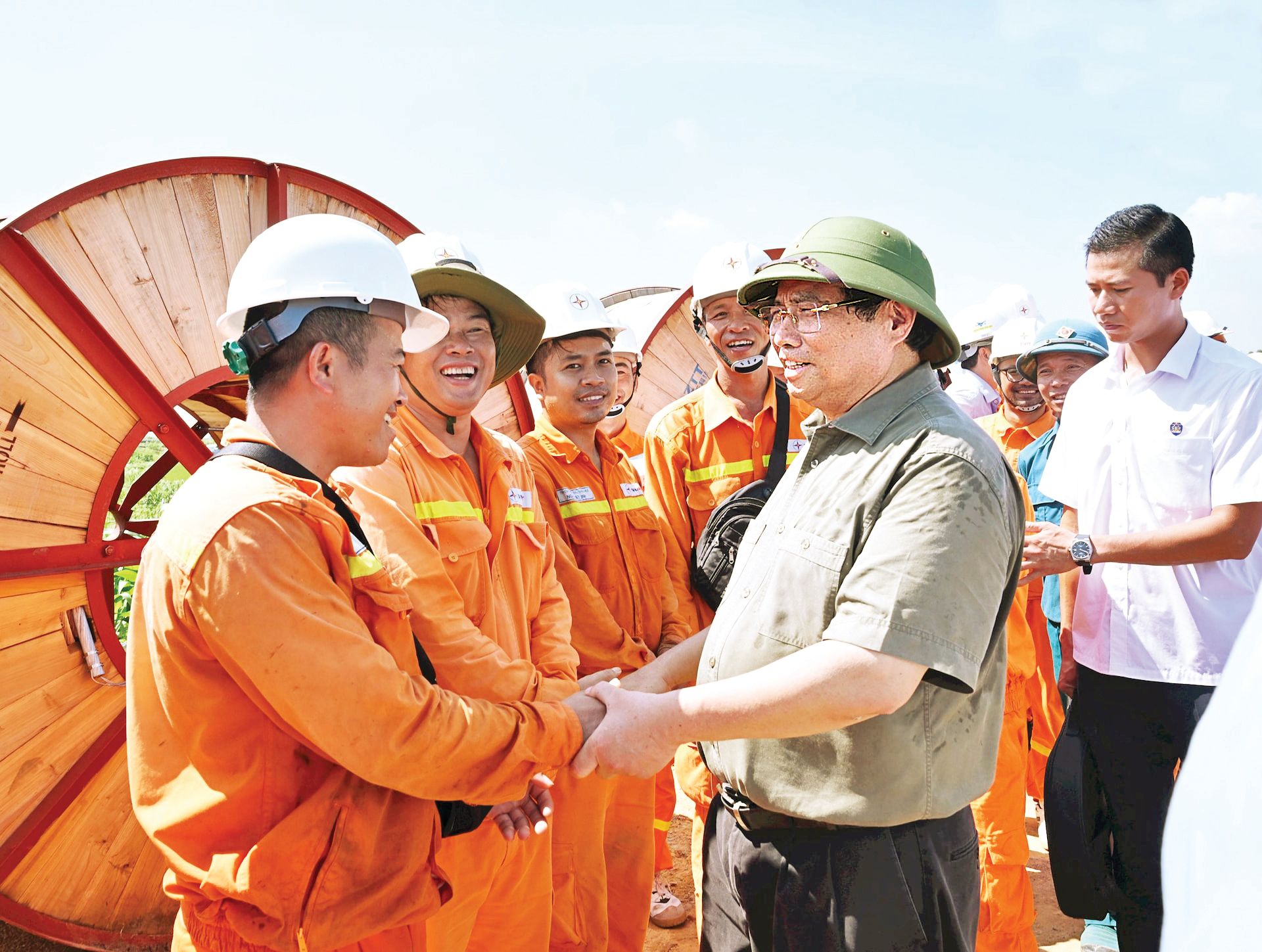 Le Premier ministre Pham Minh Chinh inspecte le chantier et encourage les cadres, ingénieurs, ouvriers et travailleurs sur le site du projet de l’aéroport international de Long Thanh (à Dong Nai, au Sud du Vietnam). Photo : VGP.