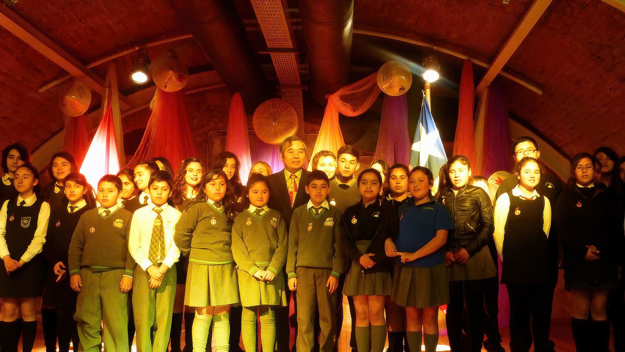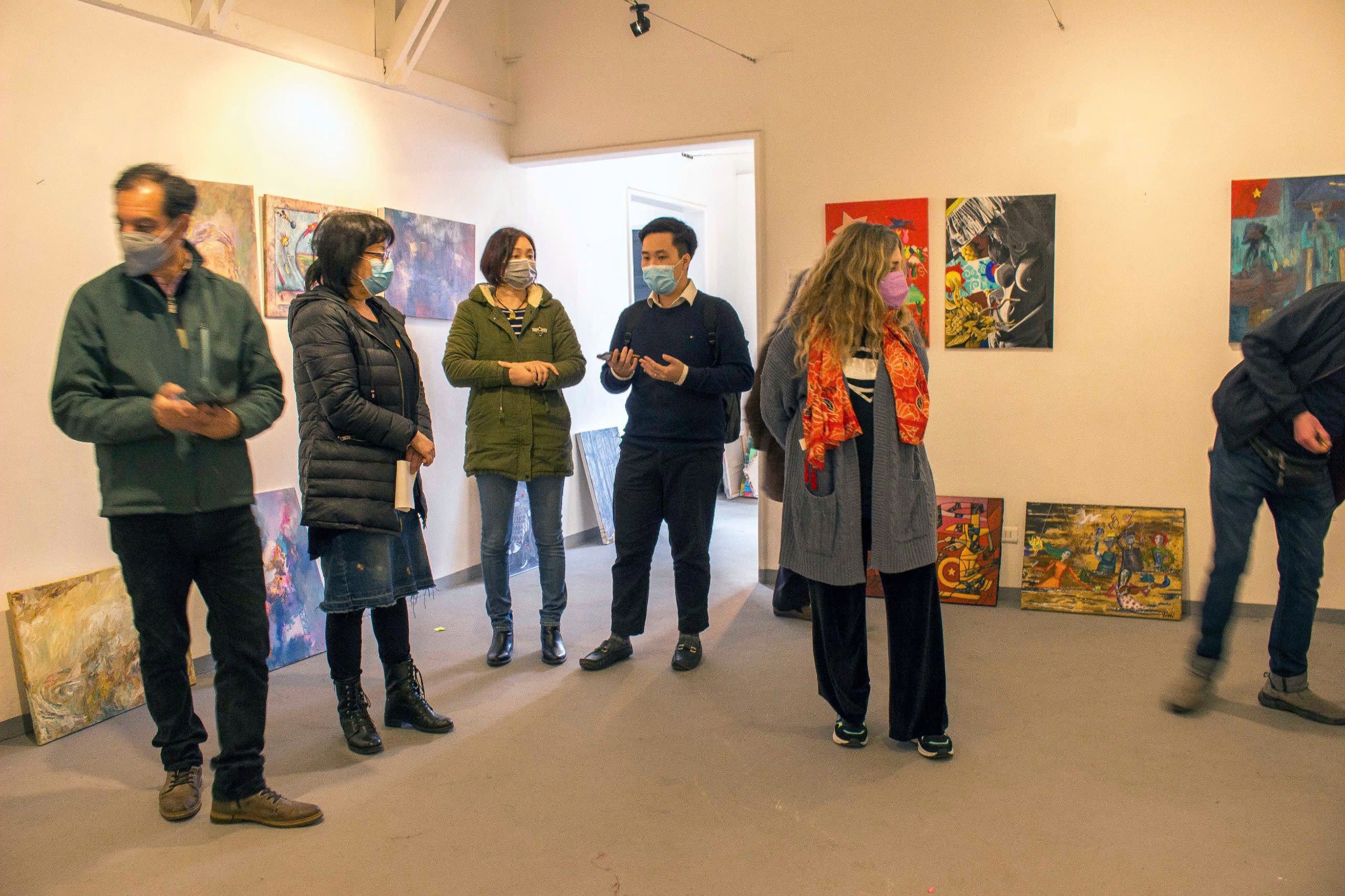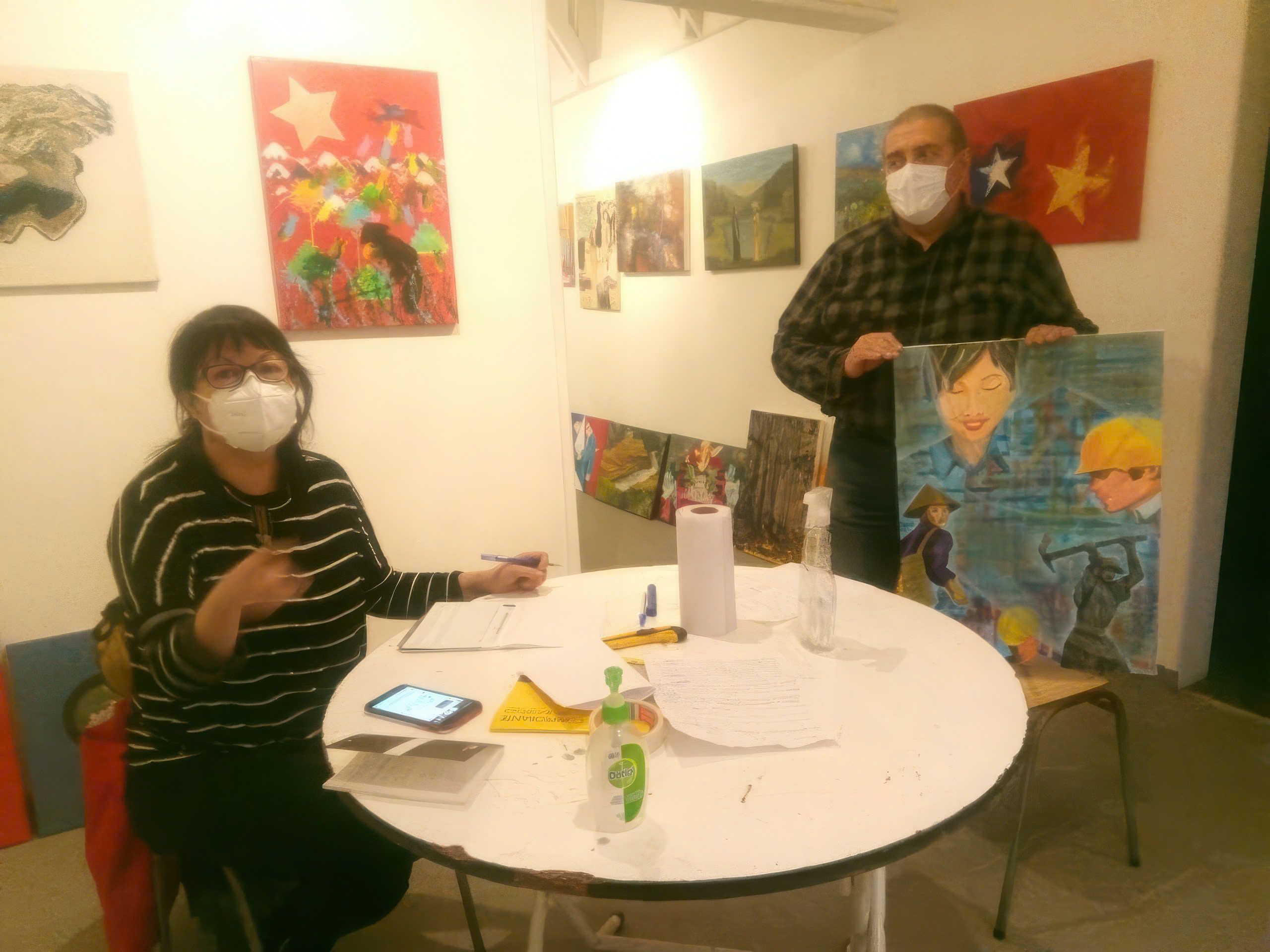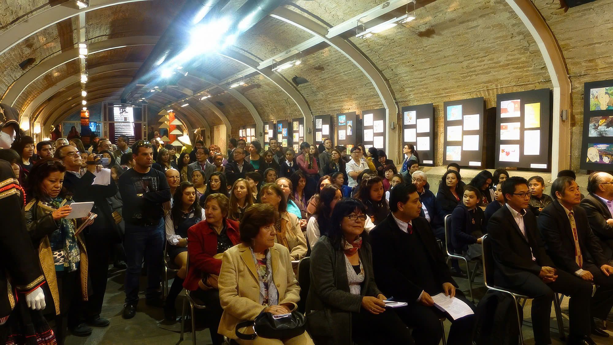 Cérémonie d'inauguration de l'exposition conjointe d'œuvres offertes par des enfants et des artistes de l'APECH. (Photographie gracieusement fournie par Patricia Abarzúa)