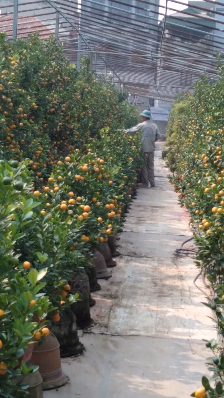 Le nombre de kumquats restants répond pourtant aux besoins des clients pendant le Têt. Les villageois sont occupés à transporter des kumquats aux acheteurs.