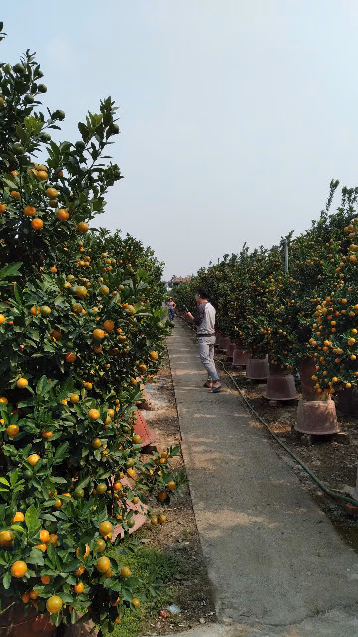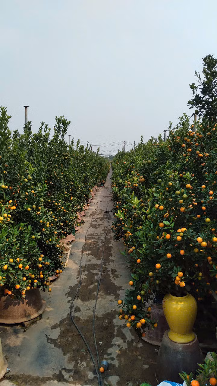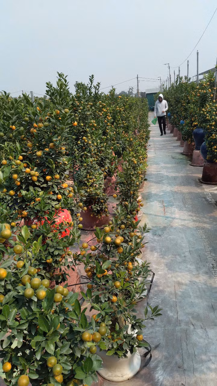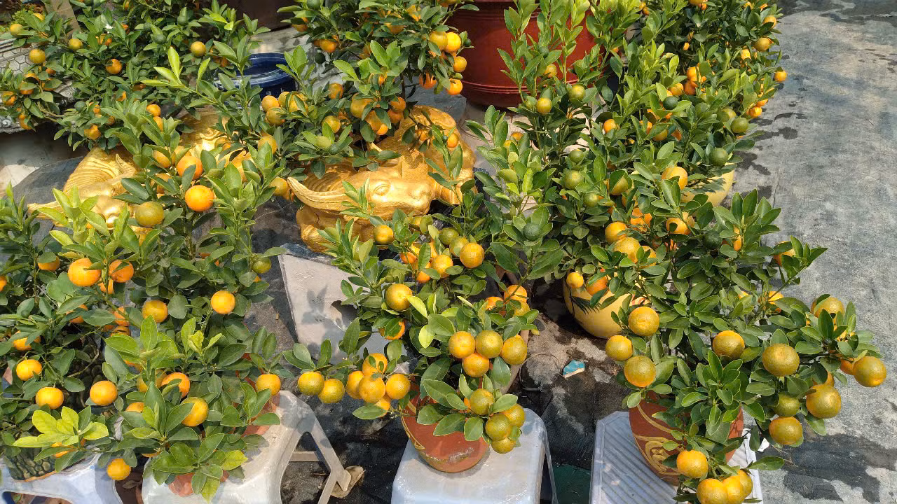 Les véhicules vont et viennent intensément, les acheteurs de partout viennent choisir des kumquats pour les louer ou les acheter afin de décorer leurs maisons et leurs bureaux.