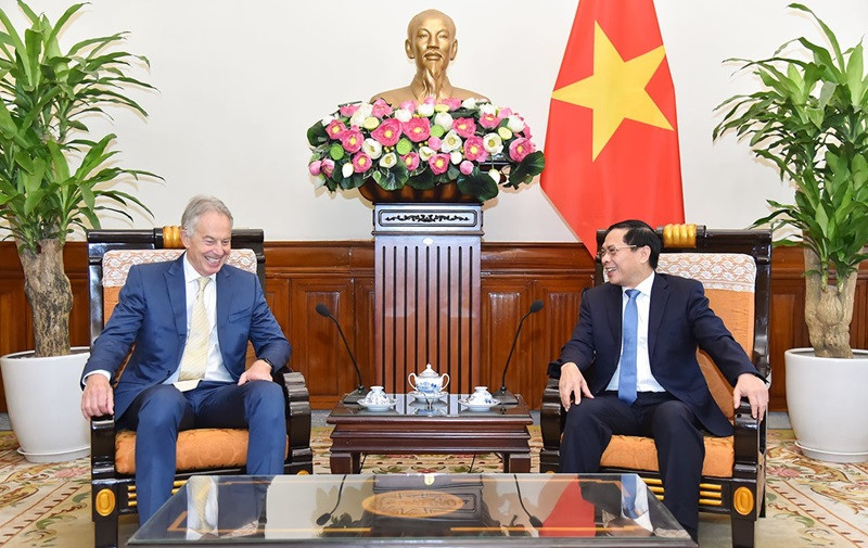 | Le ministre des Affaires étrangères, Bui Thanh Son, apprécie hautement les contributions de Tony Blair au développement des relations bilatérales. Photo : baoquocte. |