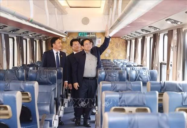 Le même jour, le Premier ministre Pham Minh Chinh a effectué une visite d'inspection à la gare de Hanoï et au train de haute qualité Hanoï - Dà Nang (SE19).