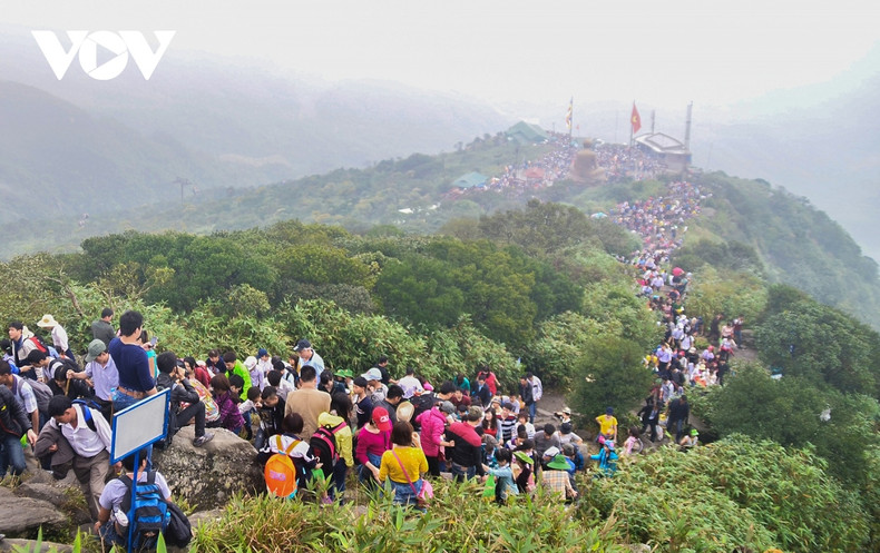 Pour y parvenir, les pèlerins peuvent emprunter un téléphérique ou marcher sur un sentier de montagne de 6 km. Non loin du sommet se dresse une statue de bronze de Tran Nhan Tong, haute de 15 mètres et pesant 138 tonnes.
